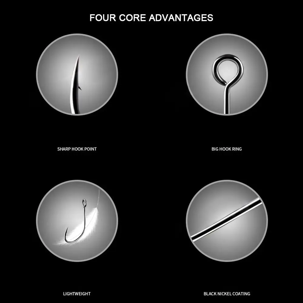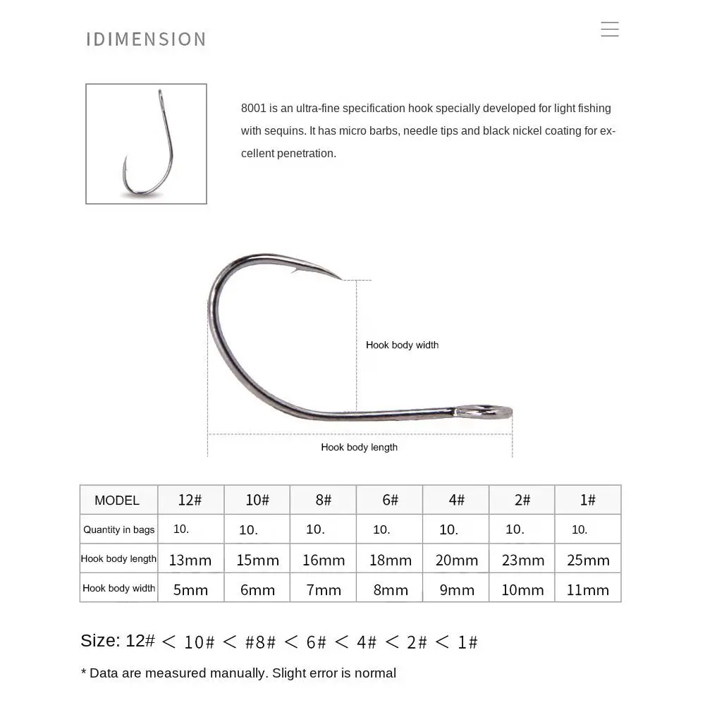 10 Uds LETOYO vástago forjado anzuelo de ojo de gran tamaño con púas para señuelo de cuchara anzuelo giratorio de níquel negro de acero con alto contenido de carbono para pesca en arroyos - Fabricado en acero inoxidable con alto contenido de carbono - Gancho de púas - Vástago largo - Embalaje en caja de plástico. Cantidad de embalaje: 20 piezas (2 bolsas) de gancho púas Descripción: - Tamaño disponible: 1 # -12 #