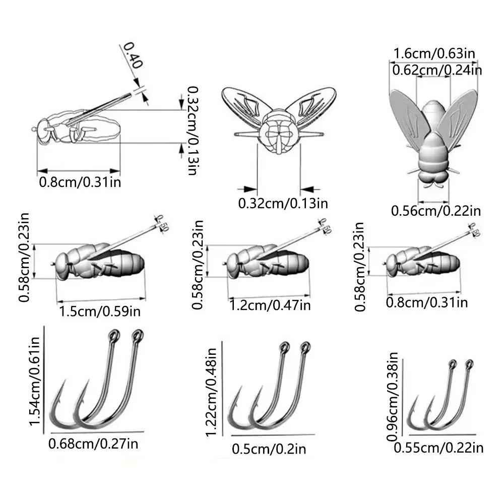 Color: negro, marrón Material: plástico Característica especial: Gancho afilado, moscas simuladas Tamaño: 0,8 cm (0,31 pulgadas), 1,2 cm (0,47 pulgadas), 1,5 cm (0,59 pulgadas) El paquete incluye: cebo de pesca con mosca biónico (Bionic Fly Fishing Bait): Todos los señuelos de pesca con mosca están atados a mano por profesionales. Las moscas están atadas con plumas de calidad bien elegidas y anzuelos afilados para pescar con mosca. Las moscas de pesca con mosca realistas y duraderas son el mejor regalo para los pescadores. [Anzuelo de mosca seca de primera calidad] El cebo de pesca con anzuelo de mosca está hecho de acero de alto carbono, que es más afilado que otros anzuelos, diseñado para enganchar peces firme y profundamente, facilitando la captura de peces. Rico sabor a Camarón, larga tentación, larga duración, cebo fresco y fragante. Delicioso a los ojos de los peces, con punta de anzuelo extendida, el pescado ya no puede escapar. [Suministros de pesca] Nuestro Kit de moscas viene en una variedad de colores y 3 tamaños diferentes de anzuelos, por lo que puede pescar en varias condiciones y apuntar a diferentes peces, este kit funciona muy bien para la lubina, panfish, pez luna y BlueGill, etc. [ Life Like Flies] Moscas coloridas y realistas atadas a mano. Los señuelos de pesca con mosca aumentan la oportunidad de atrapar peces imitando presas submarinas para atraer la atención de los peces. Las múltiples combinaciones de colores de moscas son adecuadas para la pesca en una variedad de condiciones. [Equipo y equipo de pesca con mosca] Hay múltiples tipos de moscas disponibles. El Kit de pesca con mosca incluye moscas secas. El Juego de pesca de moscas de la marca. Ideal para pescar trucha, lubina, salmón, trucha arco iris, Lucio, Carpa, etc.