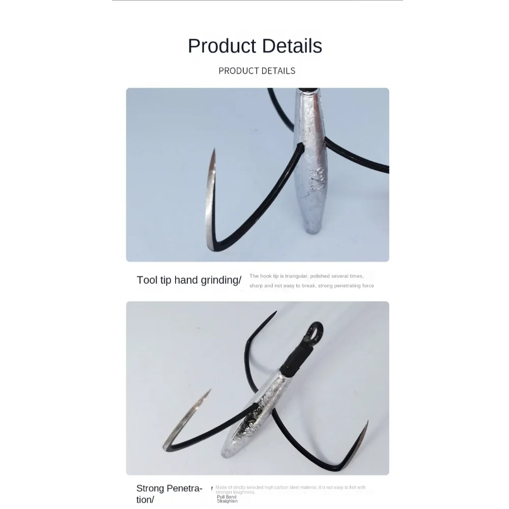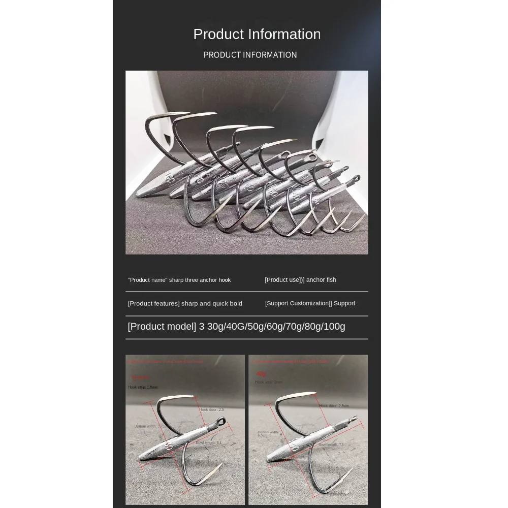 Sharpened Strong Big Fishing Treble Hooks With Lead Sinker Weight Fishhook Fishing Tackle Tools Accessories Top Quality Material:Lead Size:5 SIZE FOR YOUR CHOOSE Weight:30g/40g/50g/60g/70g/80g/100g Color: Silver Hook : High carbon steel hook Package Included : 1 PC Lead Sinker Weight Fishhook.