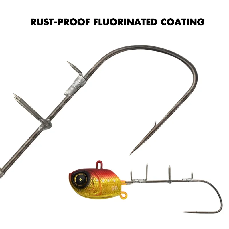 El gancho está recubierto con fluoropolímero antioxidante para mayor durabilidad, resistencia a la corrosión y una penetración más fuerte. También reduce el deslizamiento del gancho y evita que la línea se enrede.