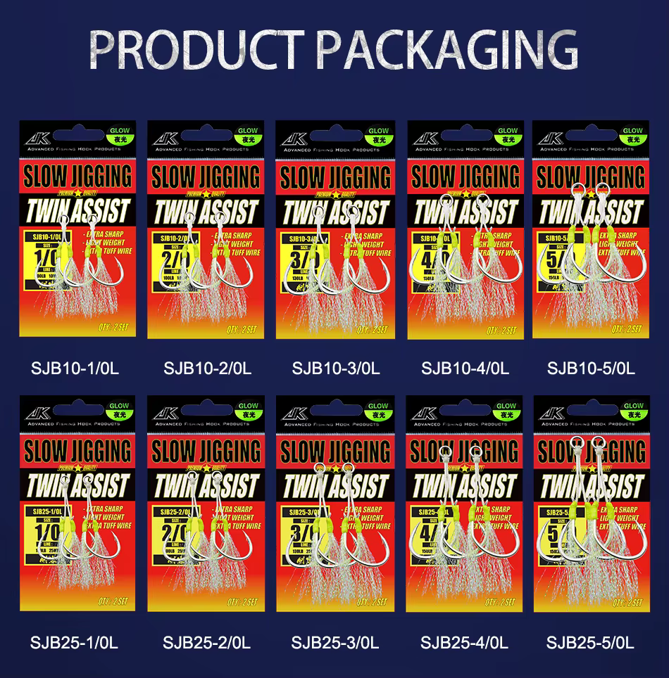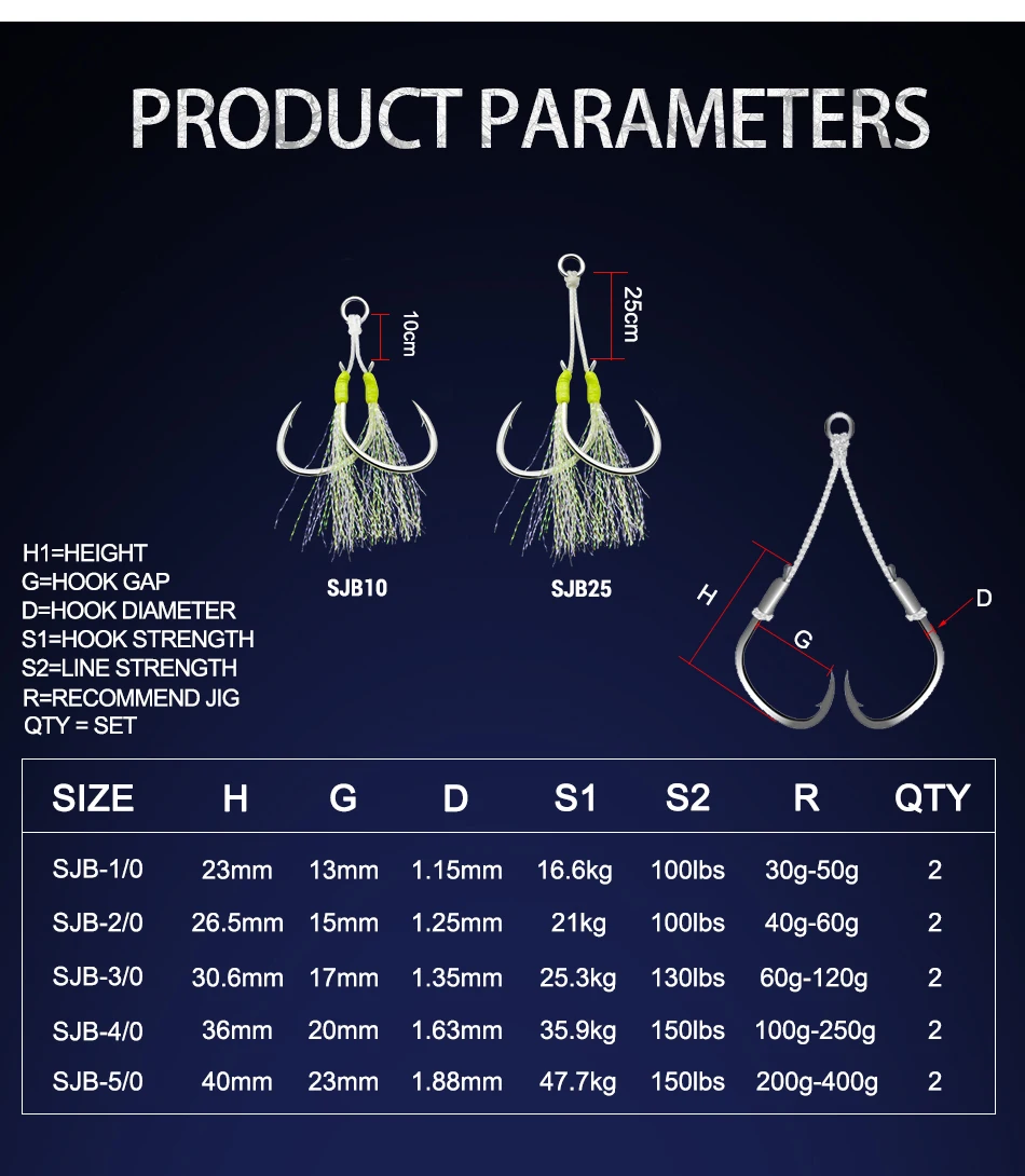 Anzuelo de asistencia JK SJB 1/0,2/0,3/0,4/0,5/0 anzuelo de Jigging lento para plantillas de Metal: 30g ~ 400g anzuelos de mar luminosos 8064 anzuelos de pesca