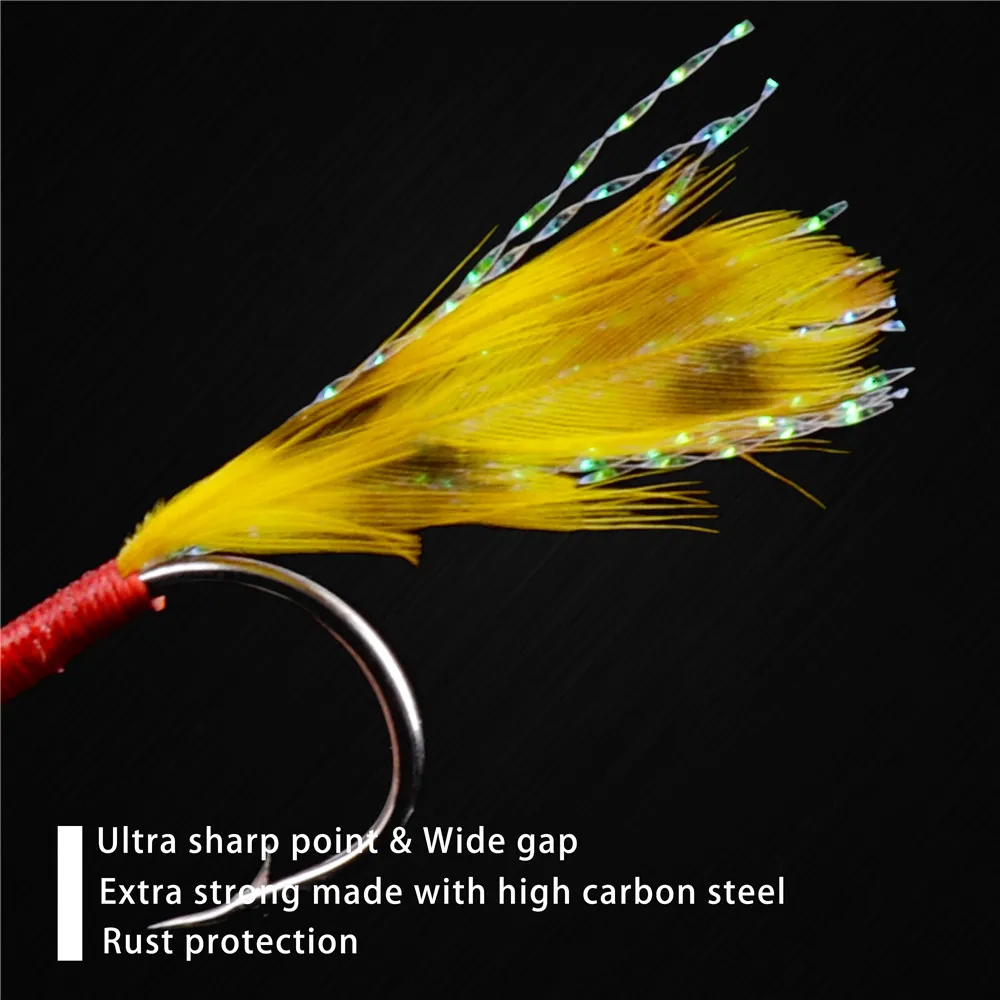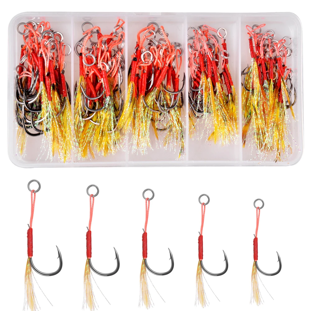 70/100 Uds anzuelo de asistencia de pesca señuelo de Jigging lento anzuelo de plantilla de Metal anzuelos de pesca con mosca con púas lubina anzuelos de atado con aparejos de plumas