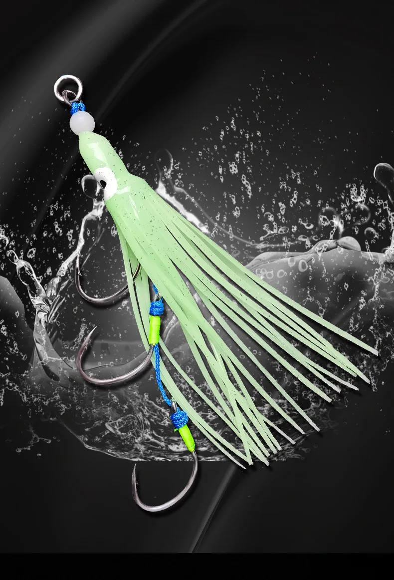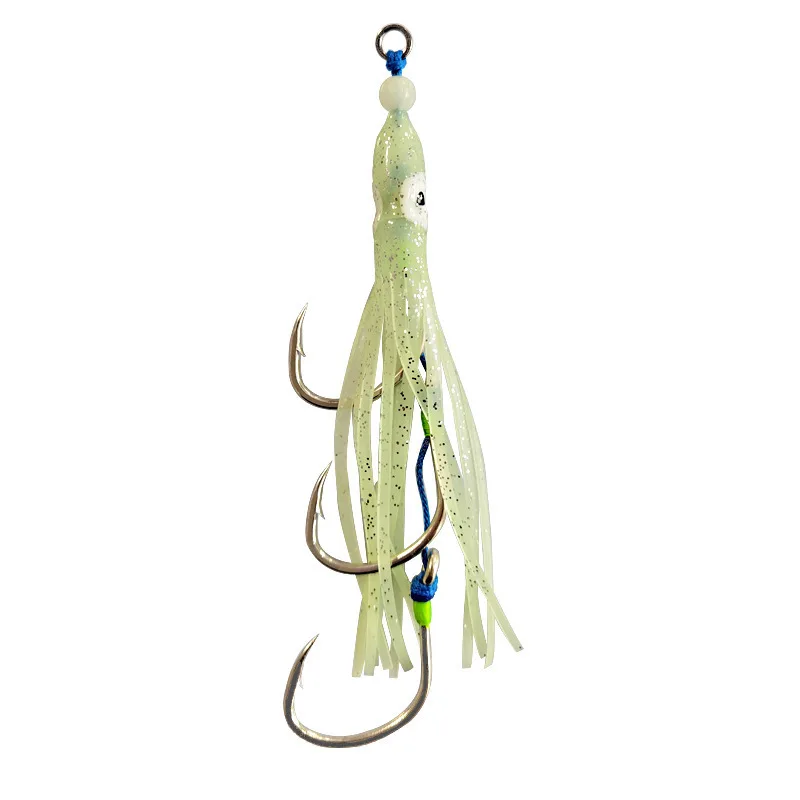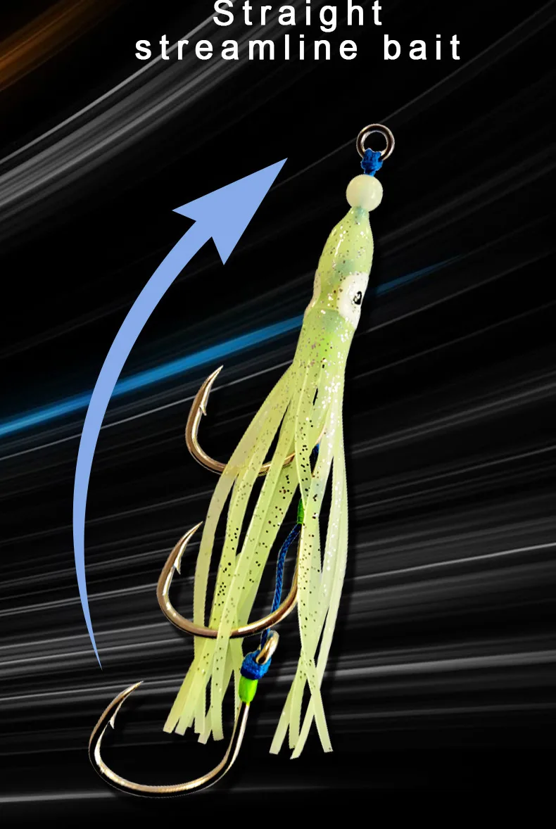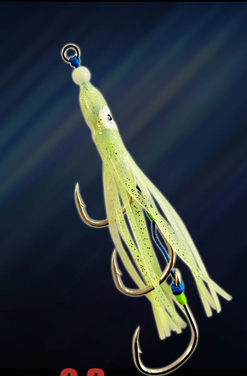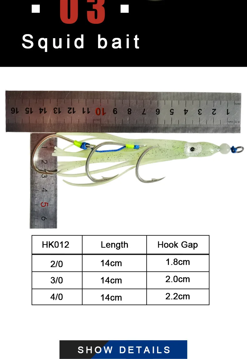 Anzuelo biomimético para pulpo, anzuelo de cuerda de calamar con brillo nocturno, anzuelo de pesca de mar con llama y luna de 14cm, anzuelo con placa de hierro, anzuelo Parker