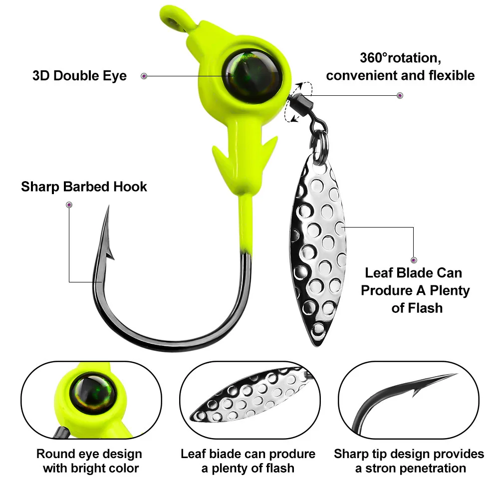 Anzuelo con cabeza de anzuelo 3,5g 5g 7g 10g, anzuelo de pesca con lentejuelas giratorias, plantilla, señuelo, cucharas de Metal, cebos duros para aparejos de pesca de gusanos blandos