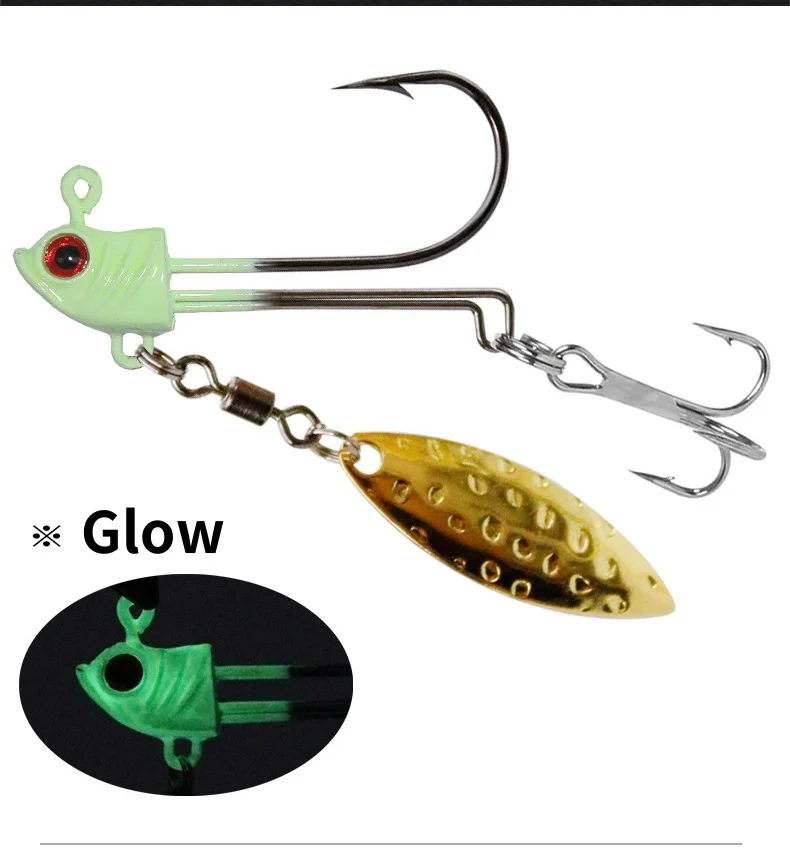 Anzuelo con cabeza de anzuelo en forma de pez, anzuelos audazes de agudos individuales, señuelo de picadura Teslon 7g 10g 17g con Spinner de rotación, 1 pieza en oferta