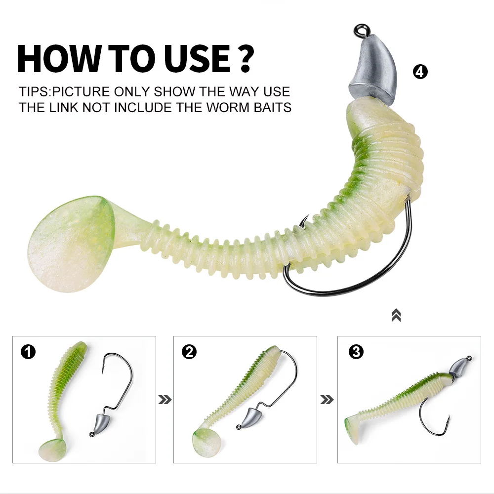 【Ampliamente utilizado】 Se aplica a una variedad de cebos blandos, incluidos gusanos y cangrejos, perfectos para lubina, lubina de boca pequeña, lubina de boca grande, trucha y crappie.