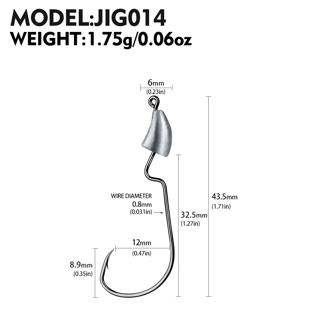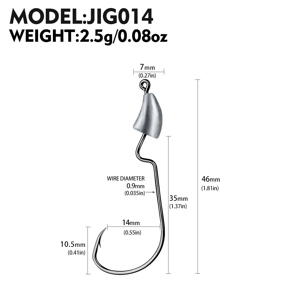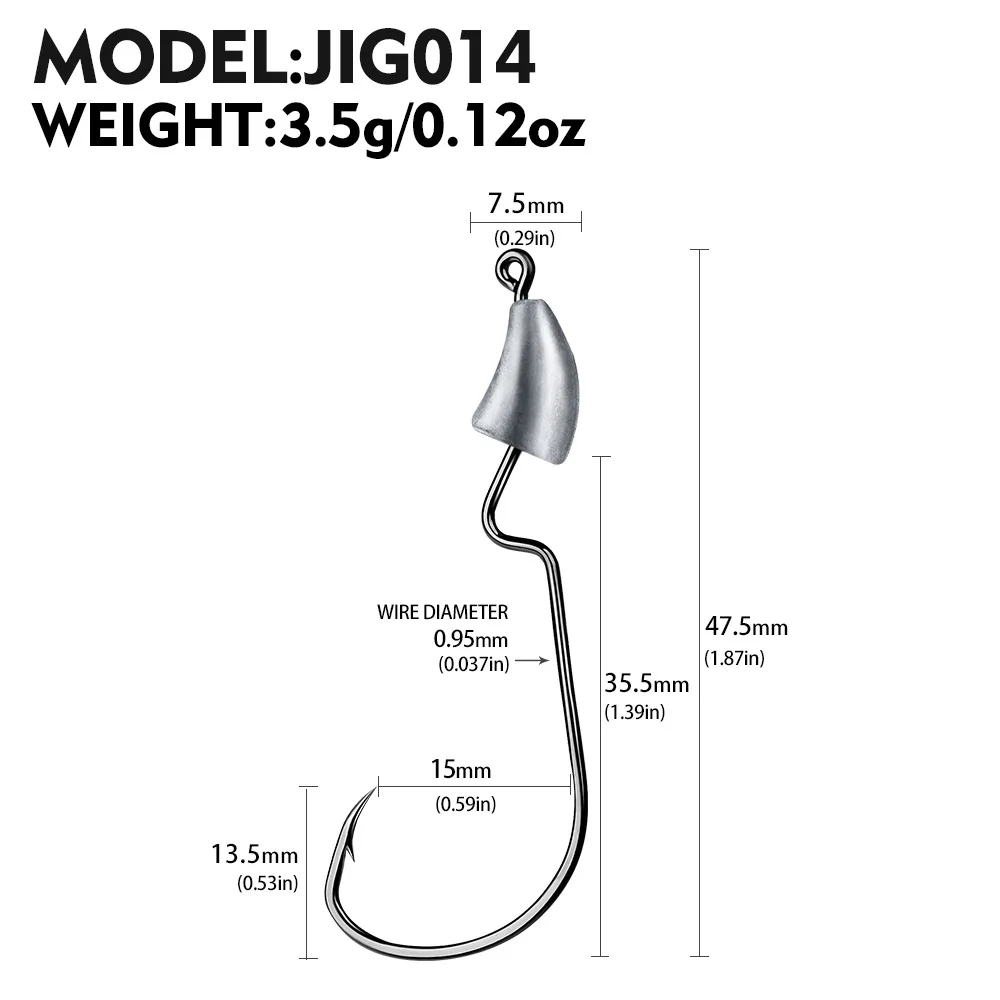 【Gancho de cabeza de plom】Los anzuelos Ned Rig están equipados con una cabeza hecha de plomo, que ayudará a que su cebo se hunda más rápida y fácilmente.