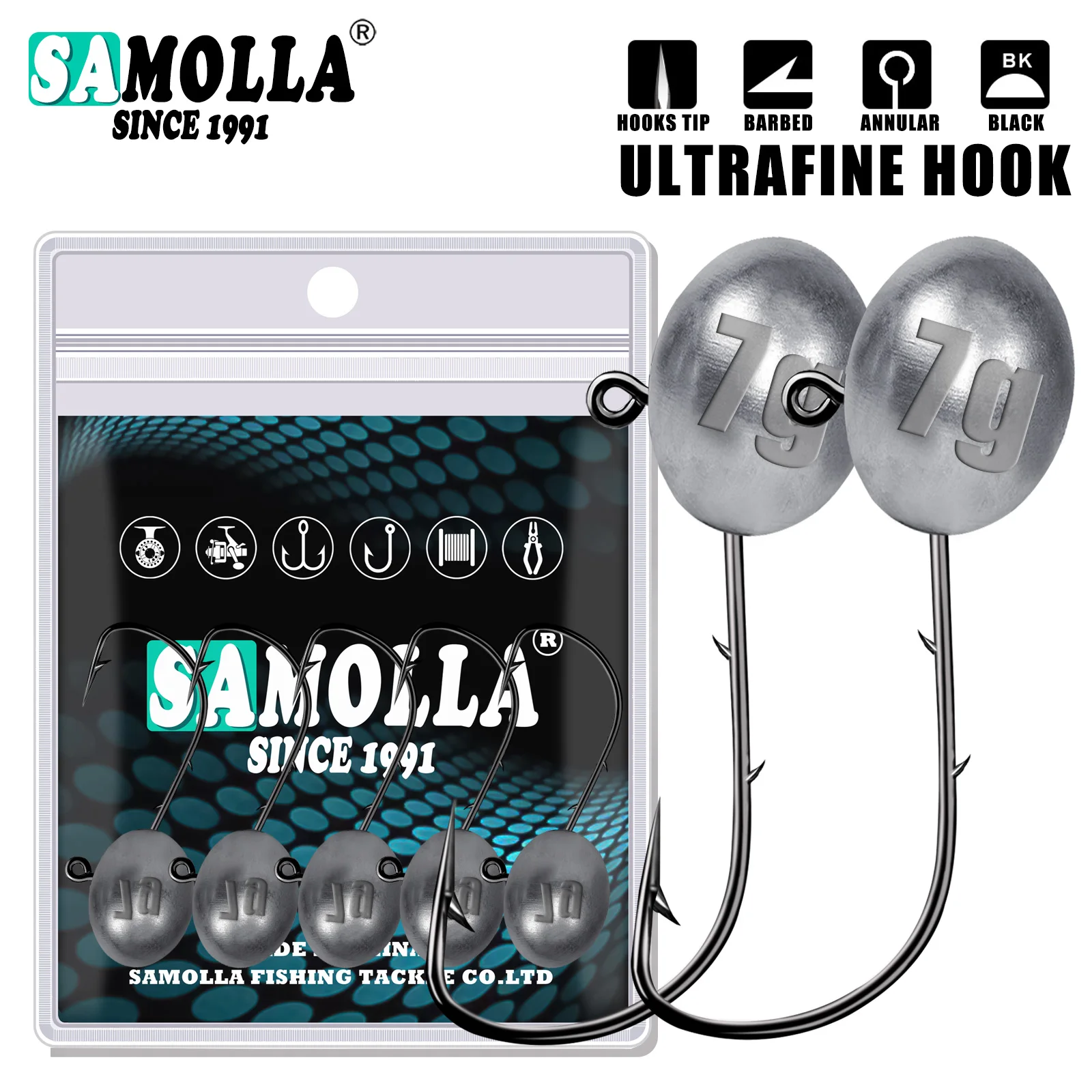 Anzuelo con cabeza de anzuelo Rockfish Ajing, anzuelos de Pesca para señuelo de gusano suave, productos de Pesca de lubina, 0,8-7g, 5 unids/bolsa, accesorios para Lucio y trucha
