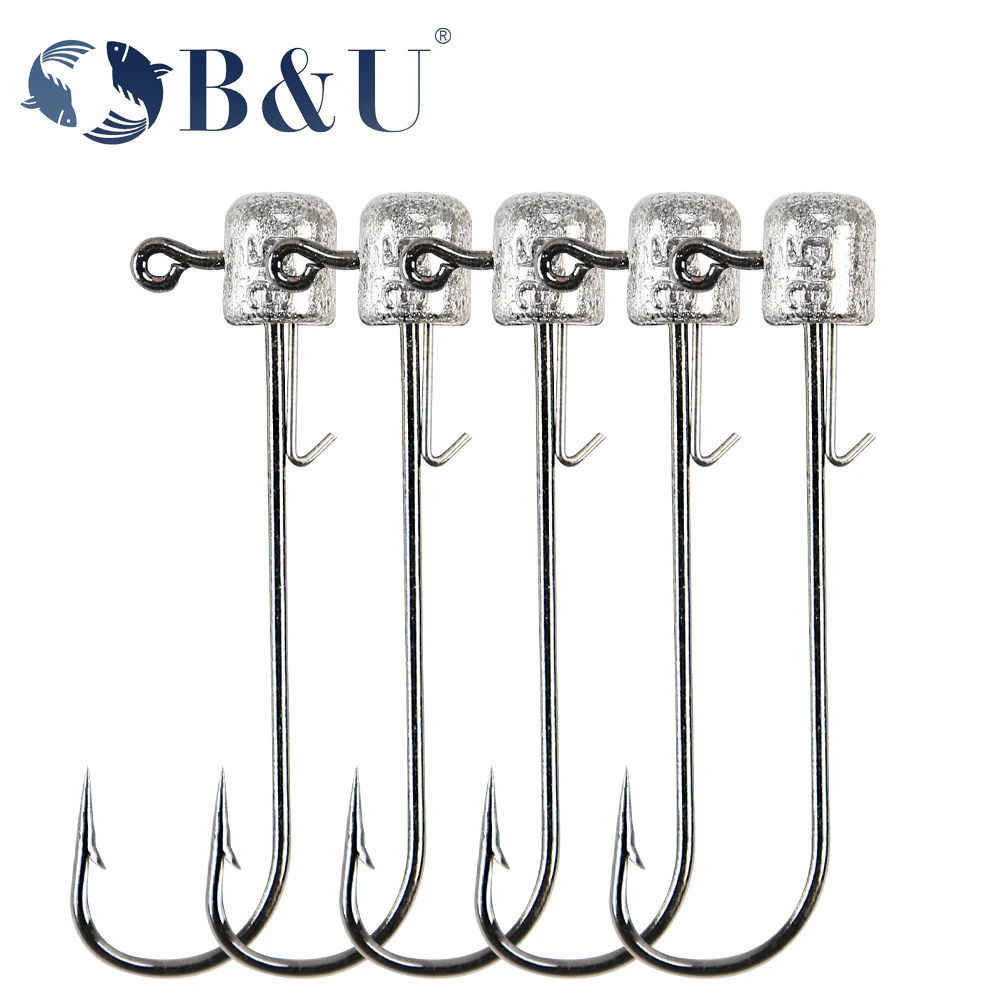 Anzuelo de cabeza B & U NED de 2g-14g, anzuelo de cabeza de plantilla de bola redonda de todos los tamaños, anzuelos secundarios de vástago largo sin malezas para pesca de gusanos blandos