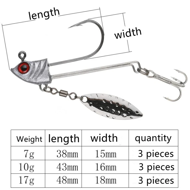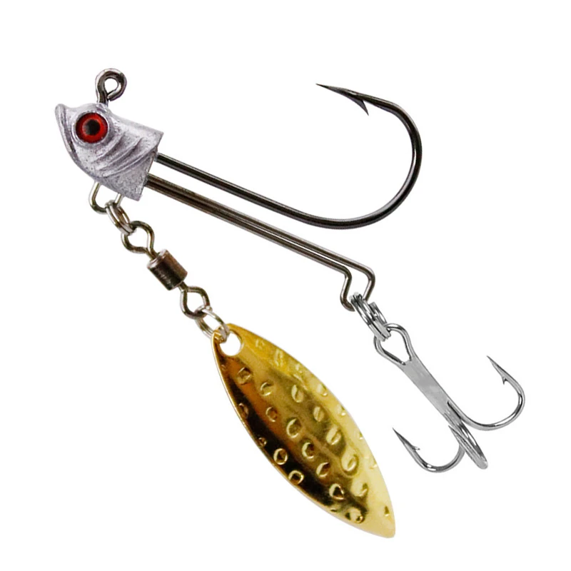 Spinner con gancho de cabeza Jig con gancho de púas doble gancho de plantilla de cuchara con ojos 3D