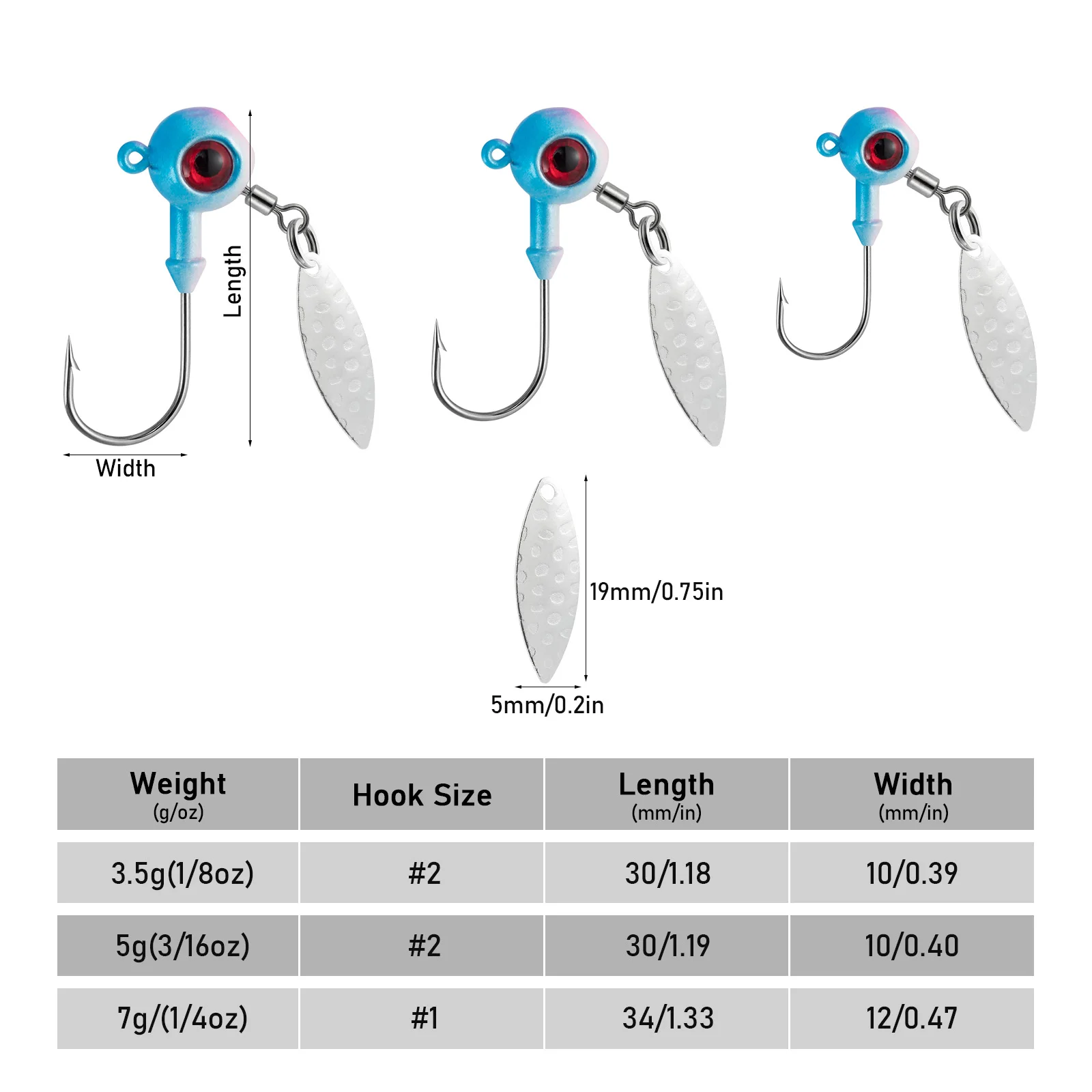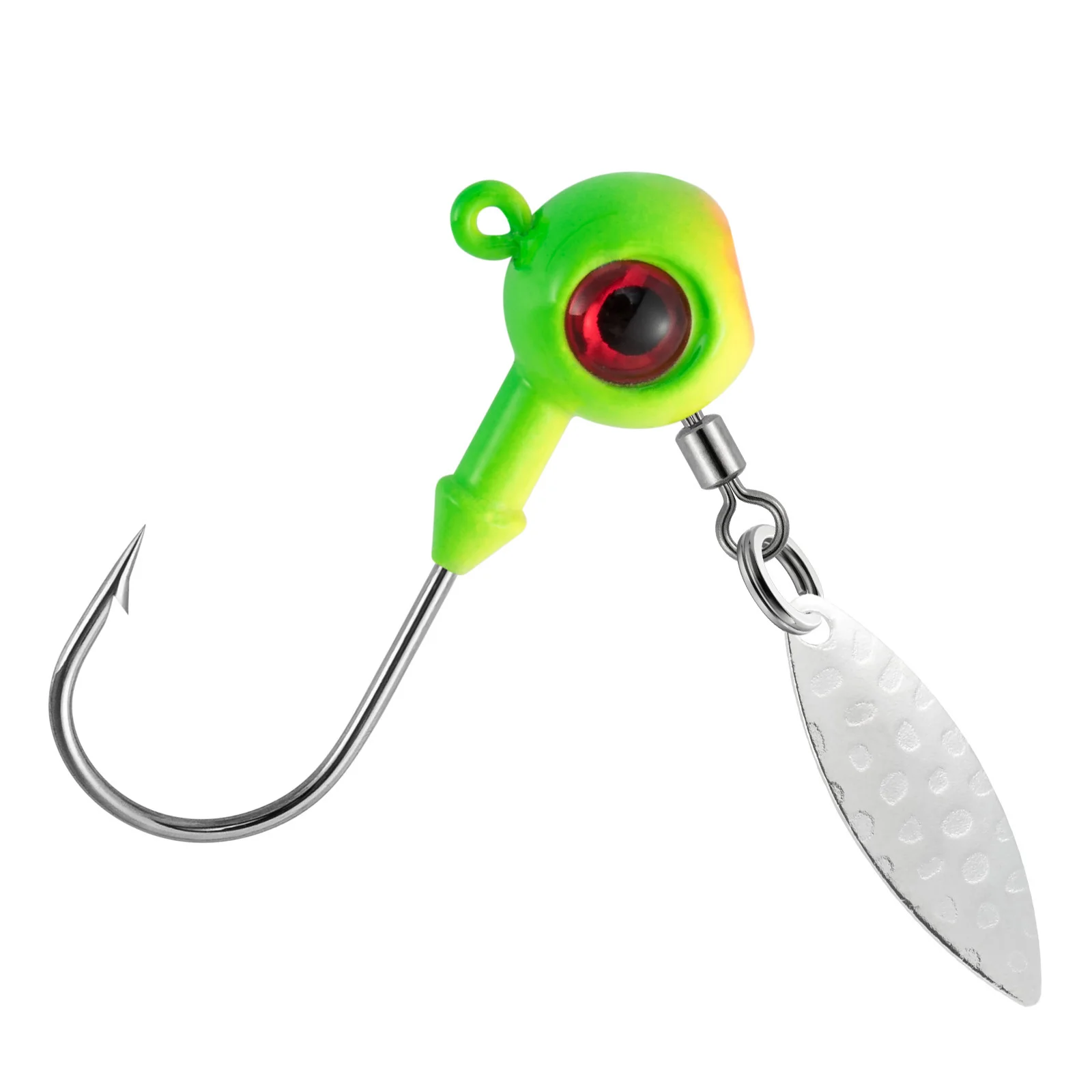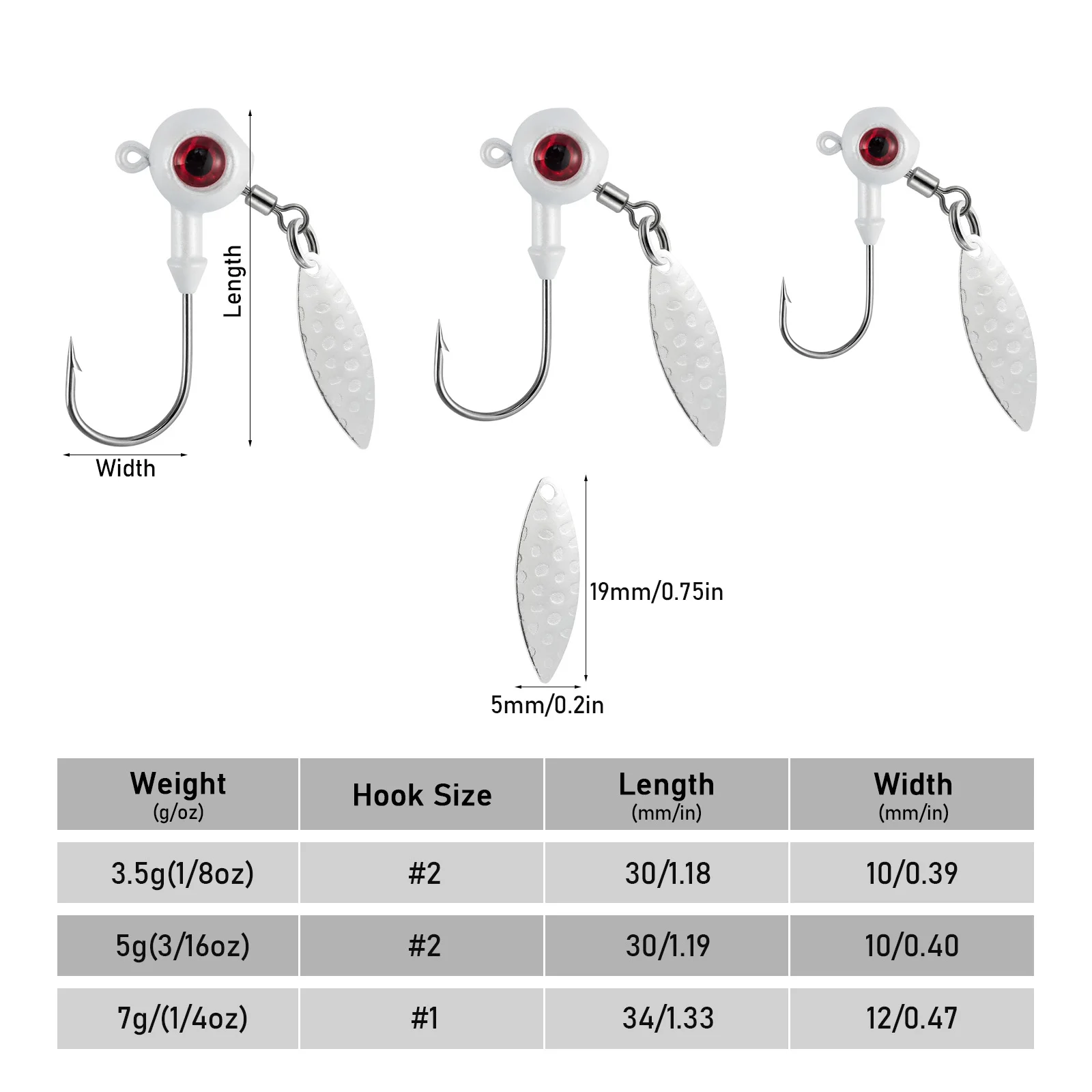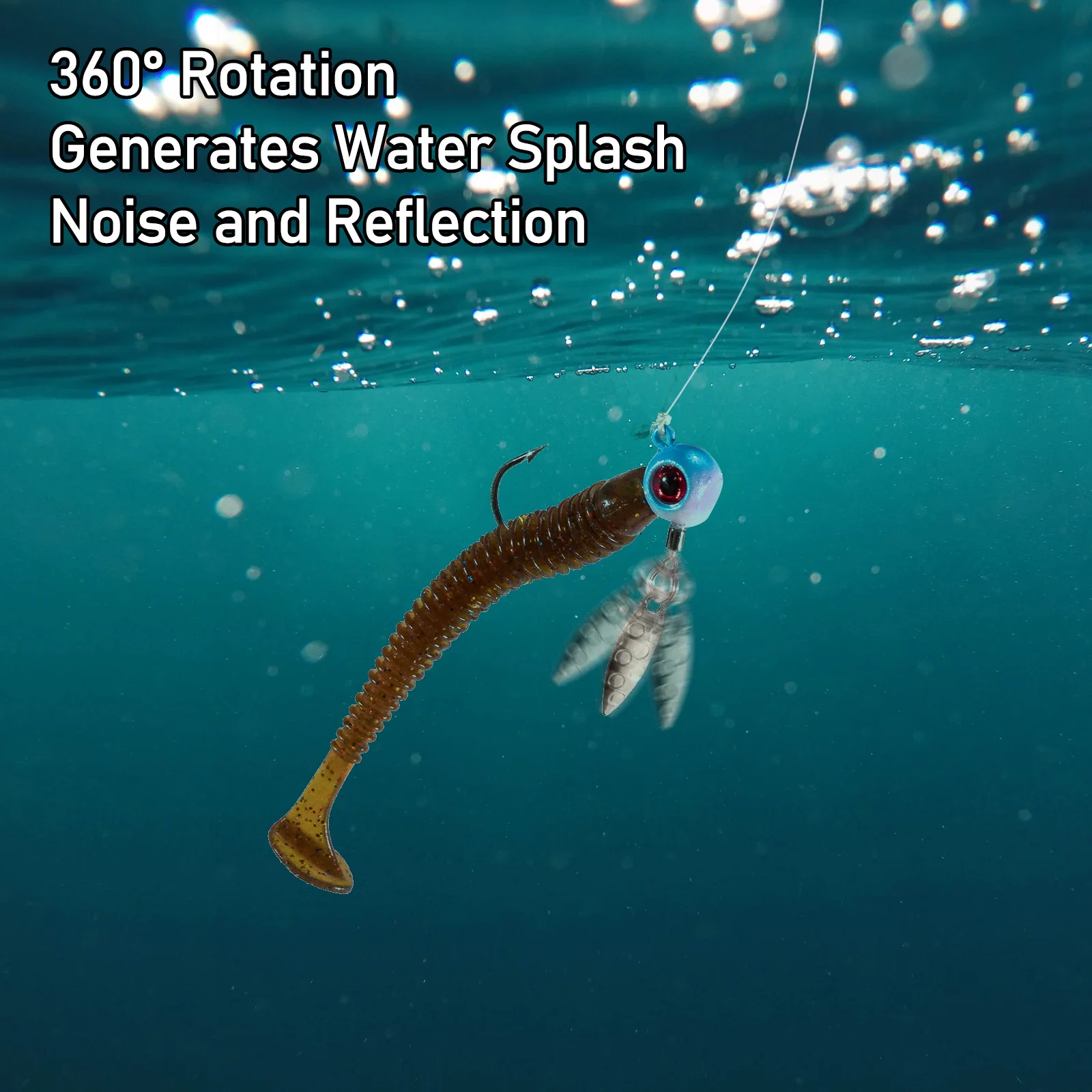 【Hoja giratoria】 La hoja de sauce martillada girará mientras arrastra estos jigs a través del agua, genera salpicaduras, vibraciones y reflejos para atraer a los depredadores hambrientos a atacarlos.