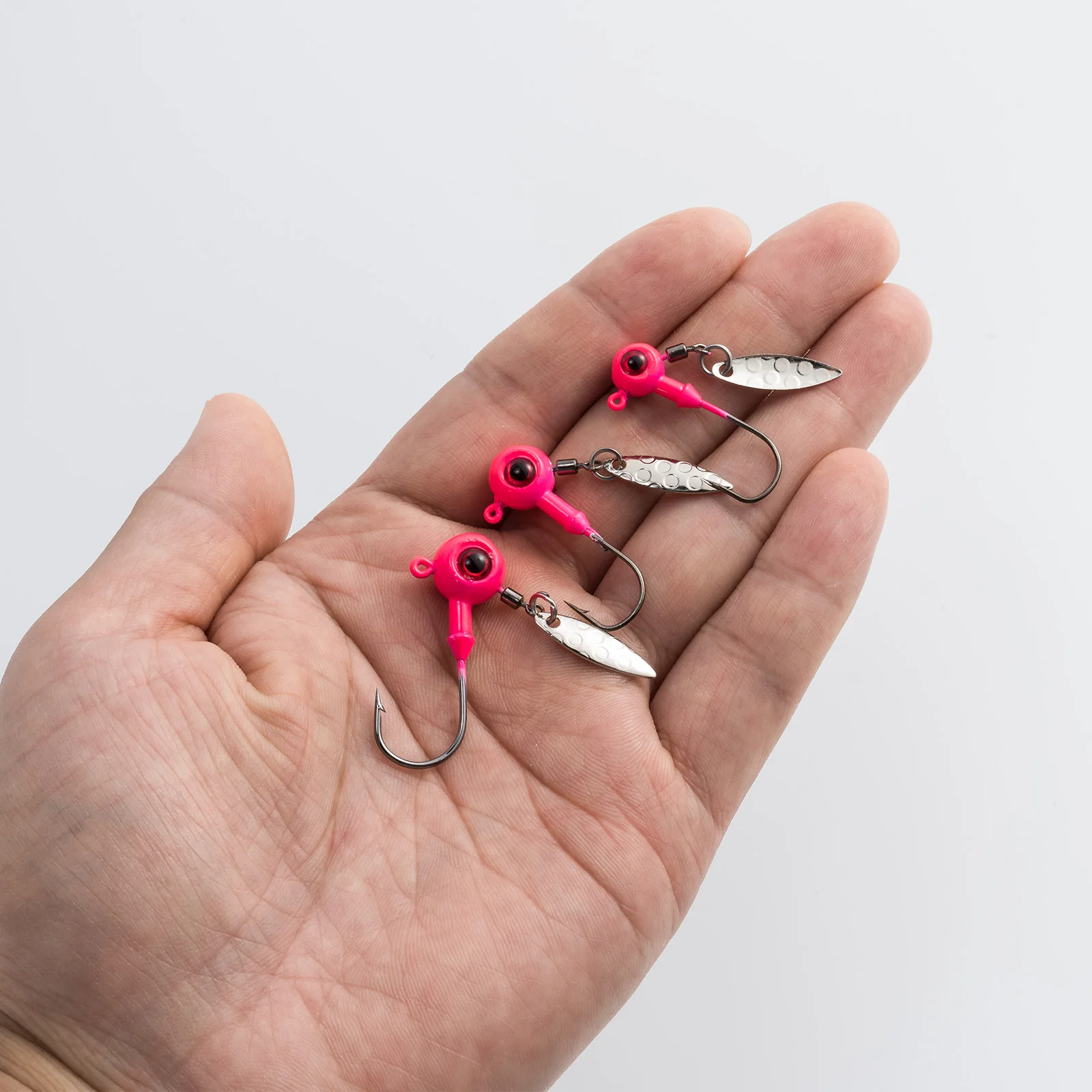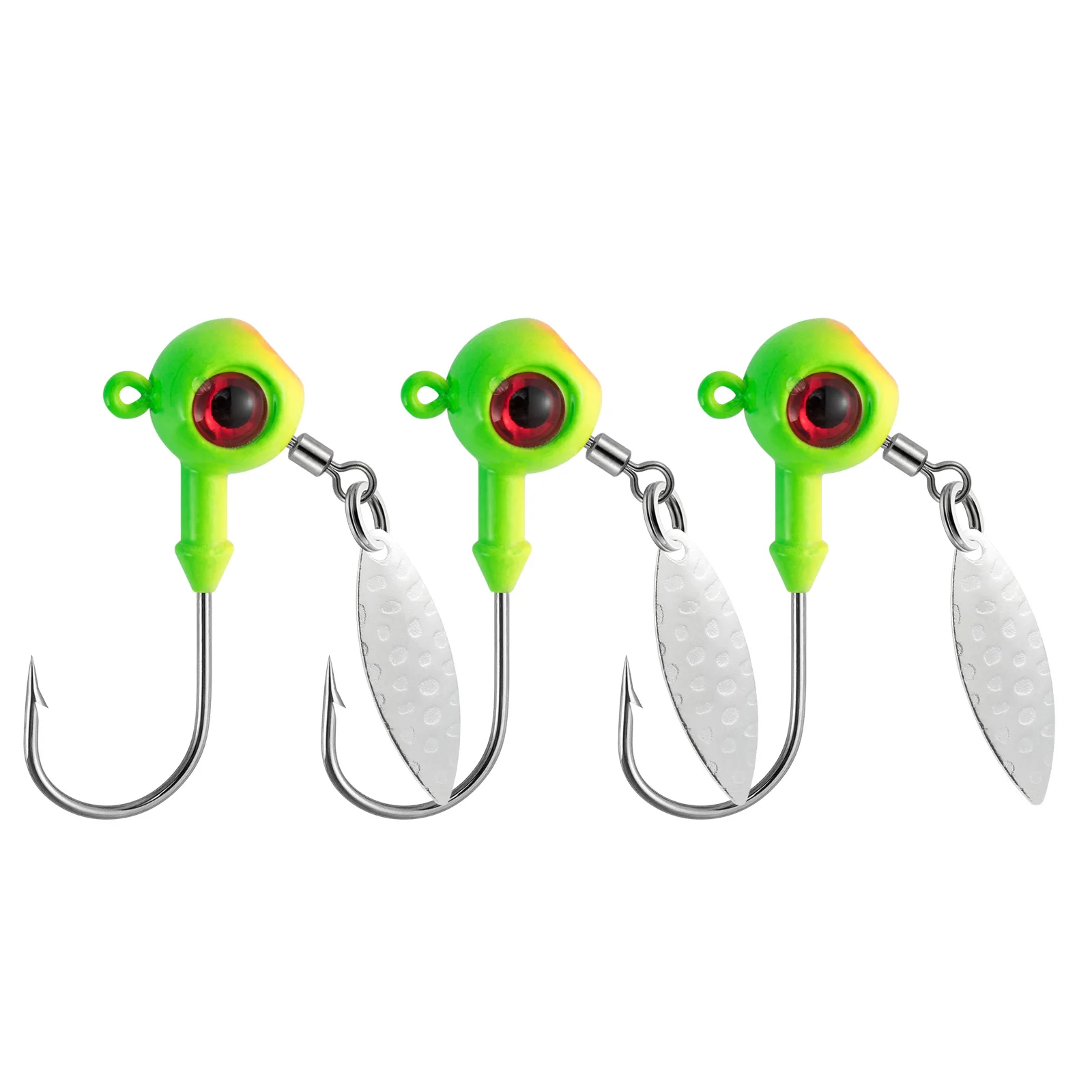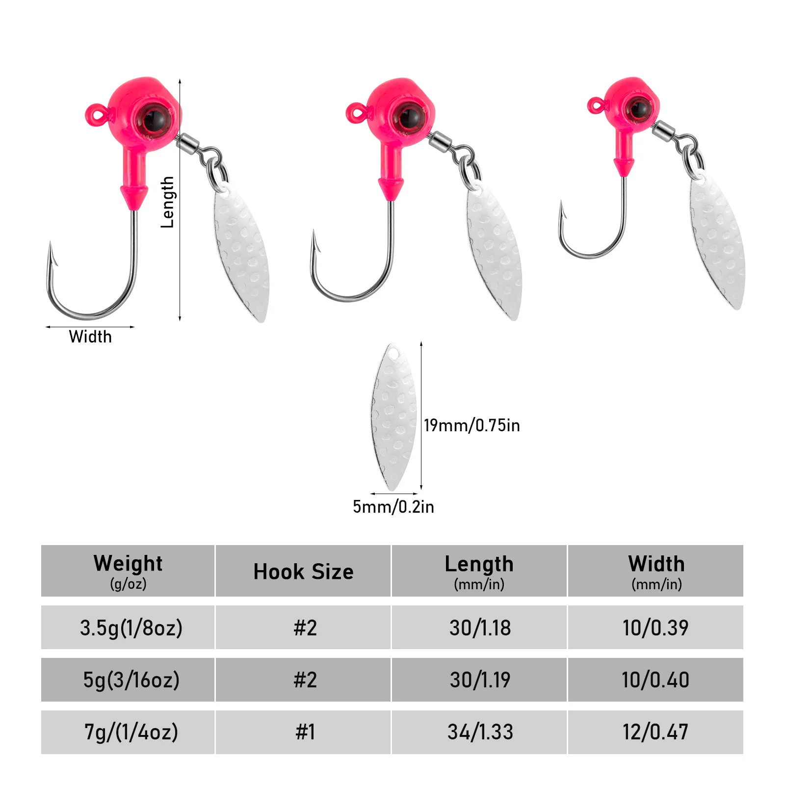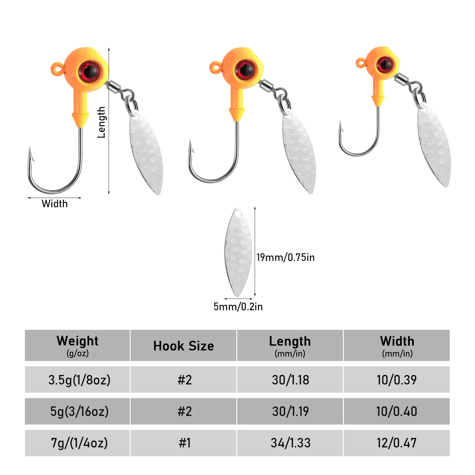 【Hoja giratoria】 La hoja de sauce martillada girará mientras arrastra estos jigs a través del agua, genera salpicaduras, vibraciones y reflejos para atraer a los depredadores hambrientos a atacarlos.