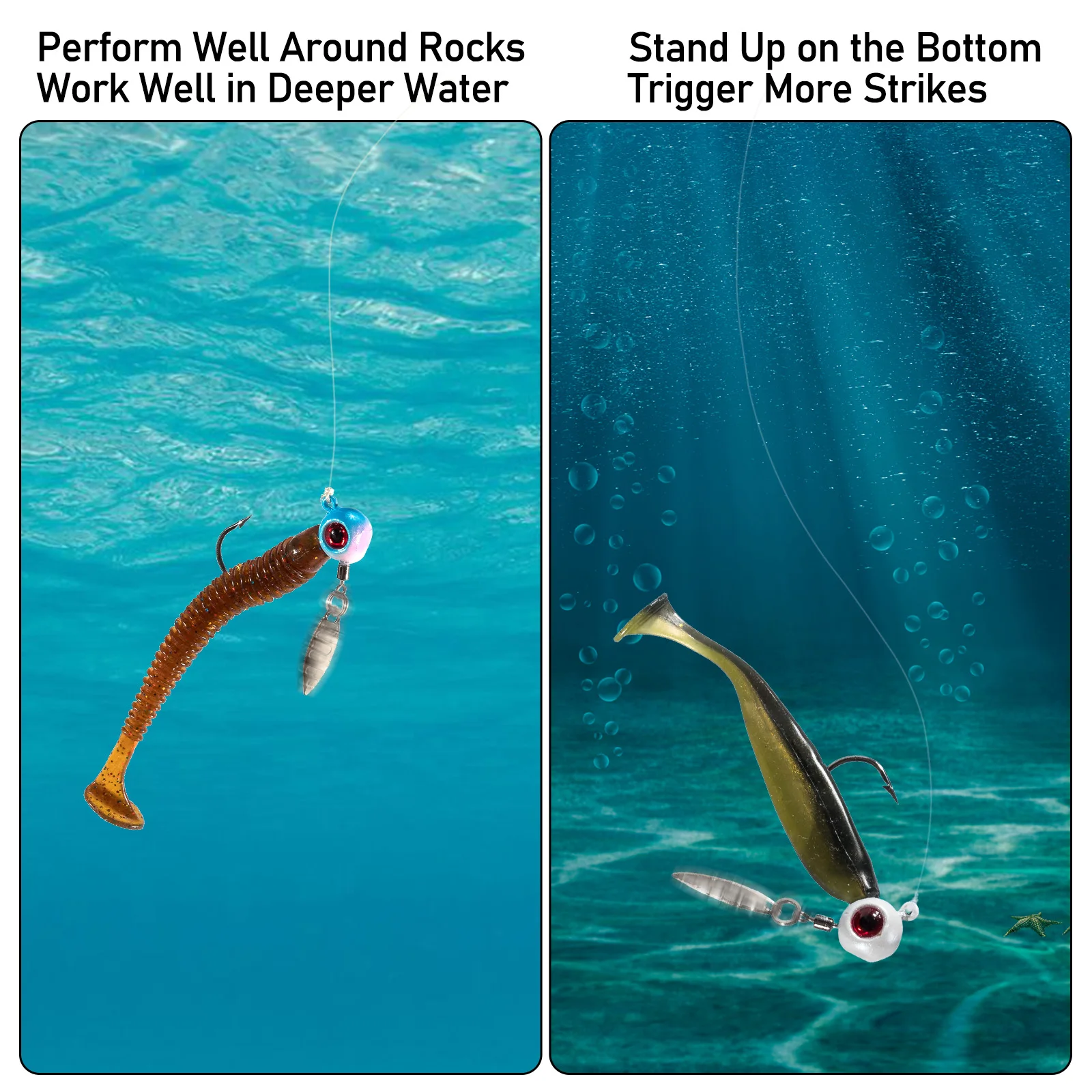 【Amplia aplicación】El guardián con collar ayudará a mantener su cebo fijo, haciendo que estos anzuelos sean compatibles con una amplia gama de cebos blandos, incluidos los cebos de cola de paleta, cangrejo de río o cebos de sábalo, Y se puede utilizar para atrapar múltiples especies de agua dulce como lubina, trucha, crappie y salmón. Y la cabeza de plantilla puede mantener los señuelos blandos de pie en la parte inferior, lo que atrae a los peces presionados y cautelosos a golpear.