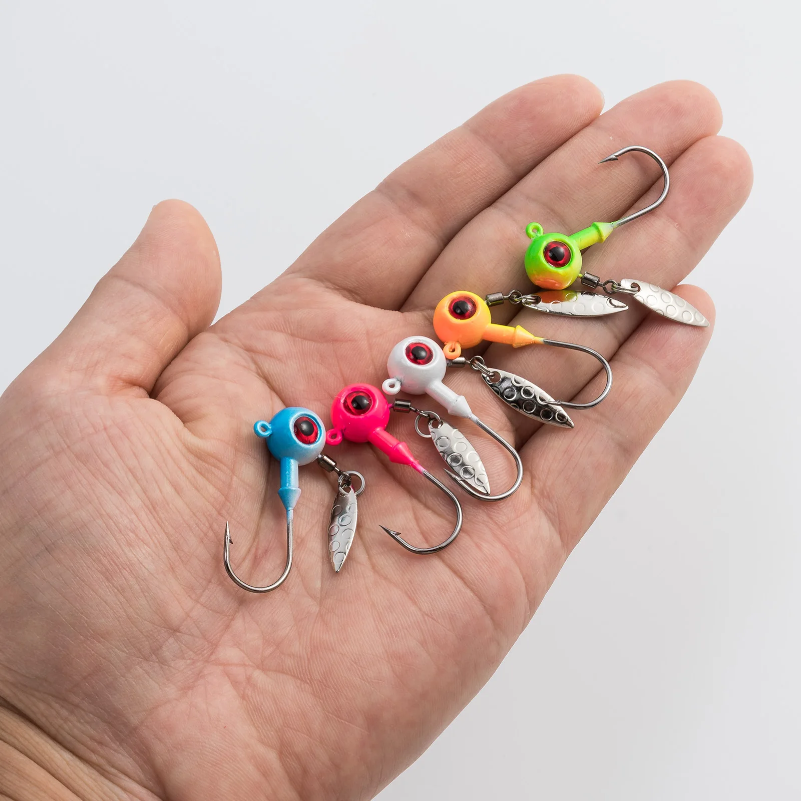 【Llamativas】Estas plantillas de pesca están pintadas con pintura brillante resistente a las astillas, lo que las hace muy visibles incluso en aguas turbias. Los ojos 3D hacen que estos jigs parezcan vivos e irresistibles.
