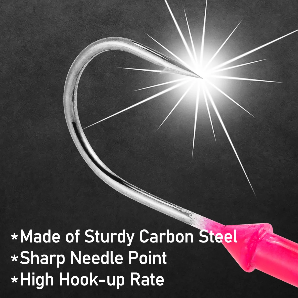 【Anzuelo afilado】 El anzuelo de pesca está hecho de acero al carbono resistente. El gancho puntiagudo es afilado, con mayor durabilidad y resistencia. El gancho afilado garantiza una mejor penetración y puede golpear eficazmente el objetivo con el cebo.