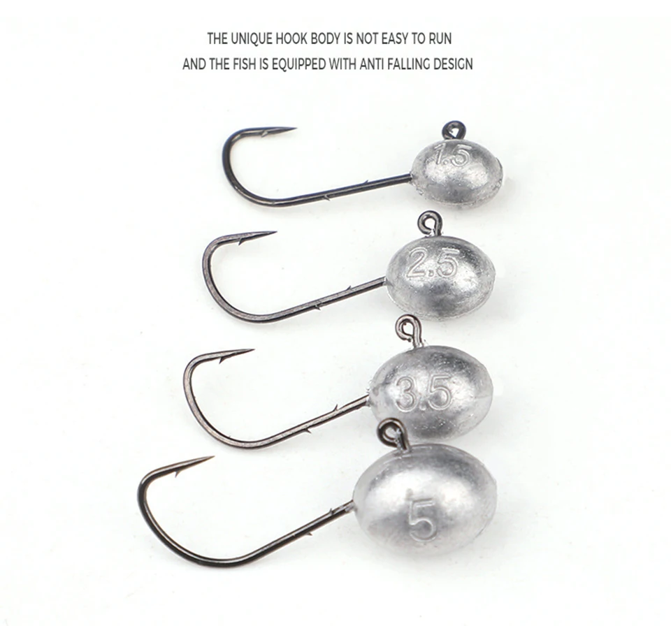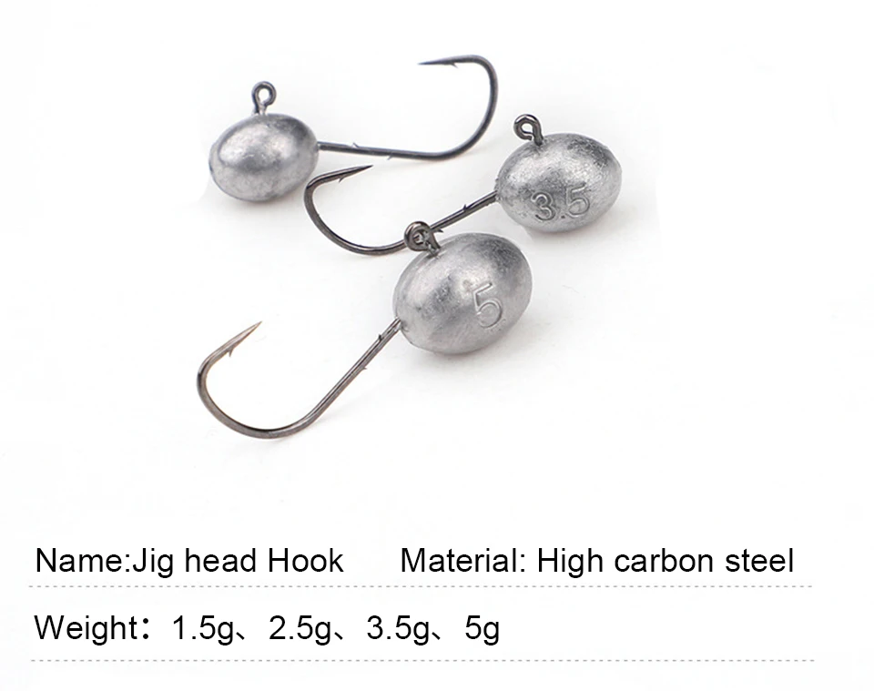 Anzuelo de cabeza plomada para trucha, señuelo de gusano suave, aparejos de pesca, 1,5g, 2,5g, 3,5g, 5g, con púas, 5 unids/lote por bolsa