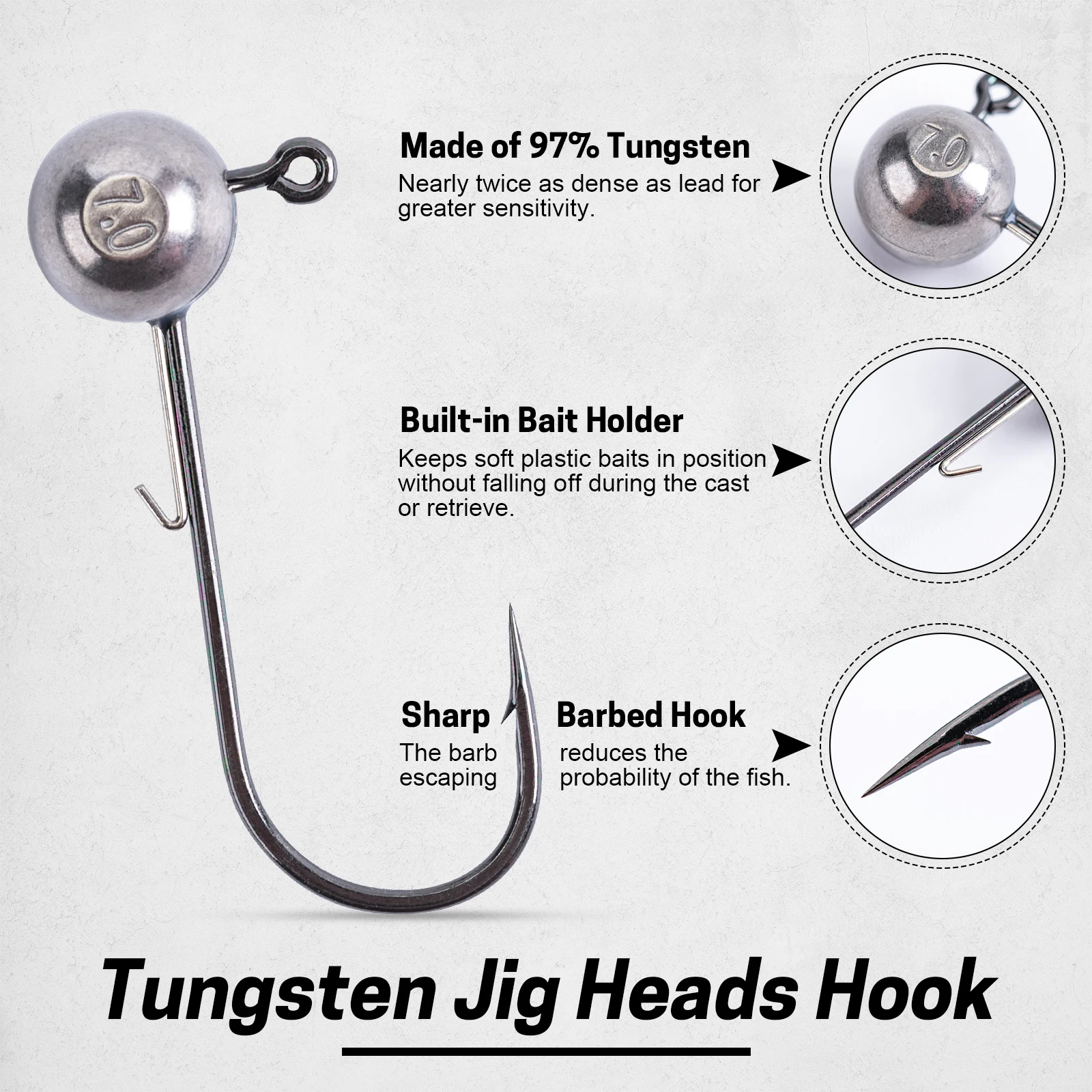 Anzuelo de cabeza plomada de tungsteno de 3/4/5 piezas, 1,8g/2,7g/3,5g/5,3g/7g, cabeza plomada de bola redonda, anzuelos de tungsteno, señuelo de gusano suave, accesorios de pesca