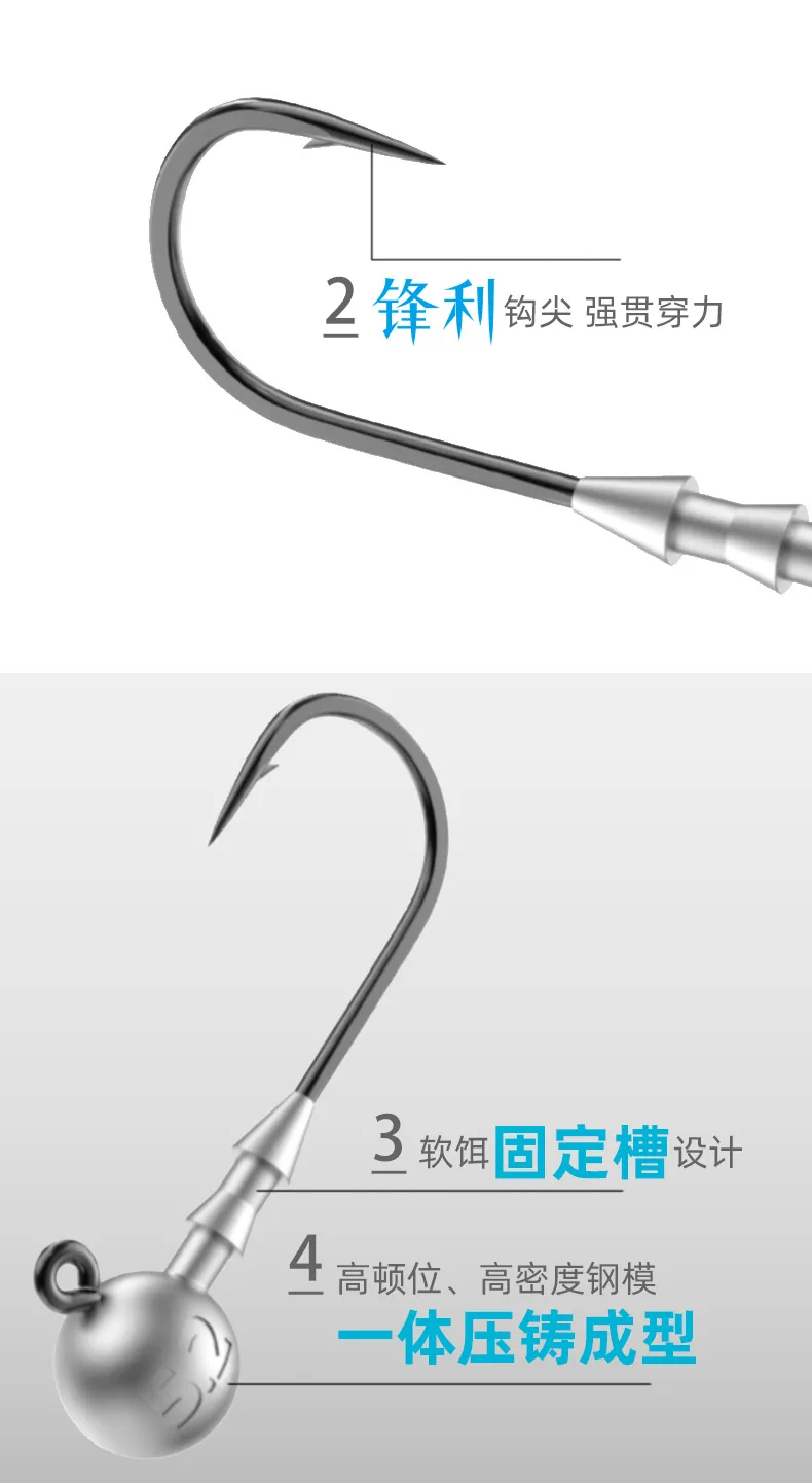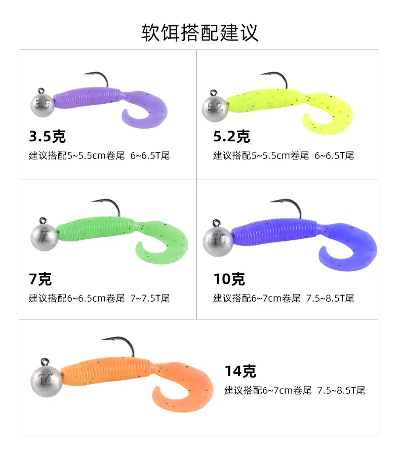 Anzuelo de cabeza de plomo reforzado, cebo Lua de gusano suave, gancho de cebo suave, anzuelo de manivela, lubina de mar anticolgante, pez mandarín, 3 uds.