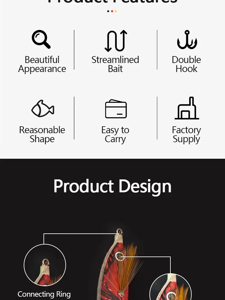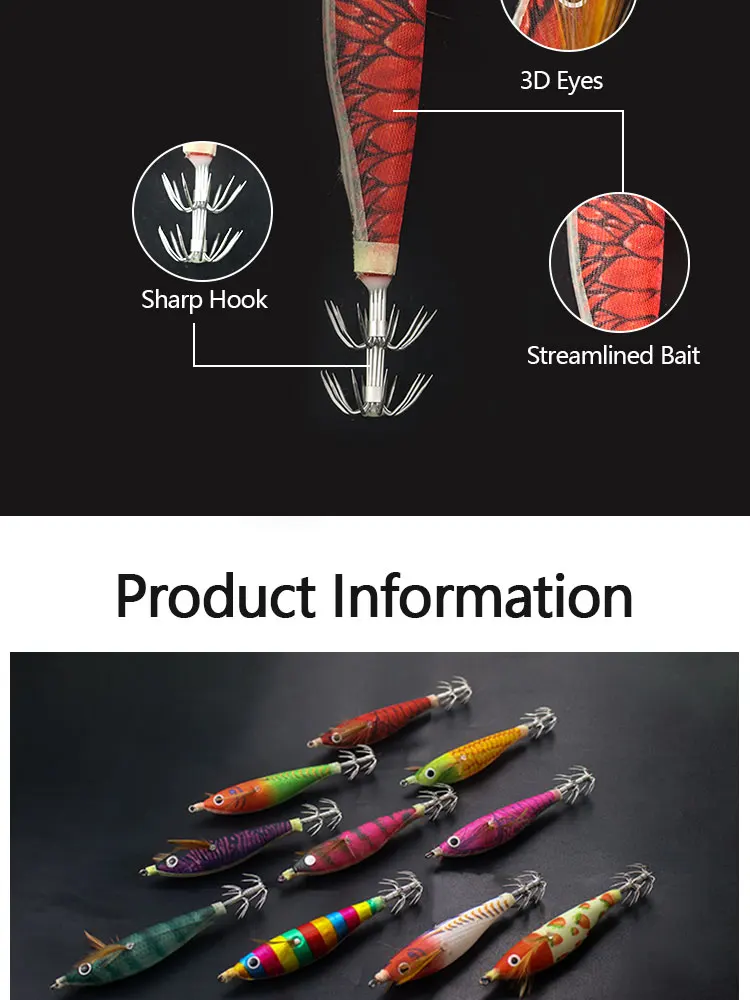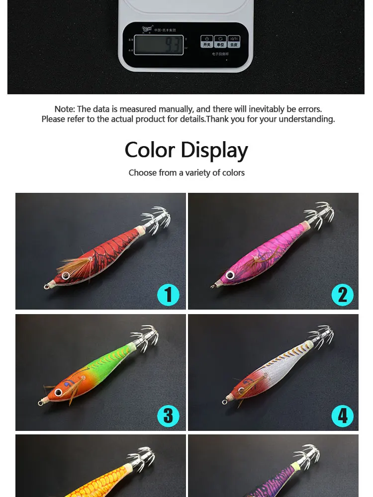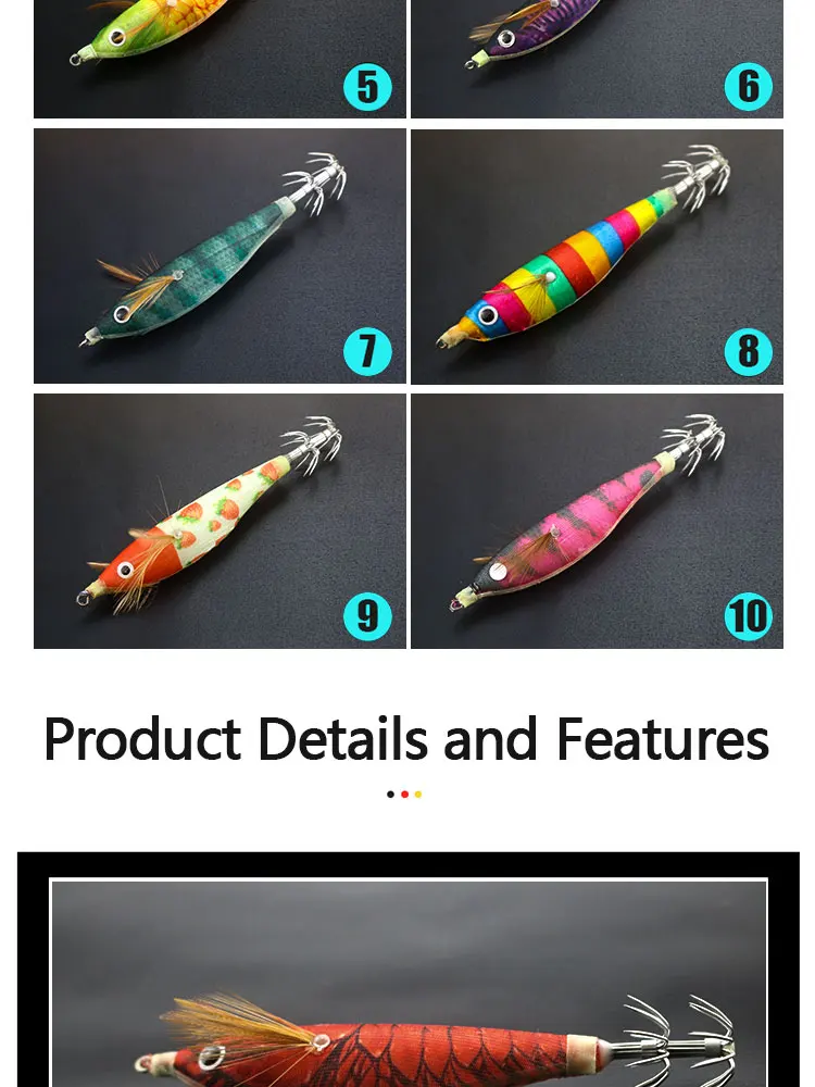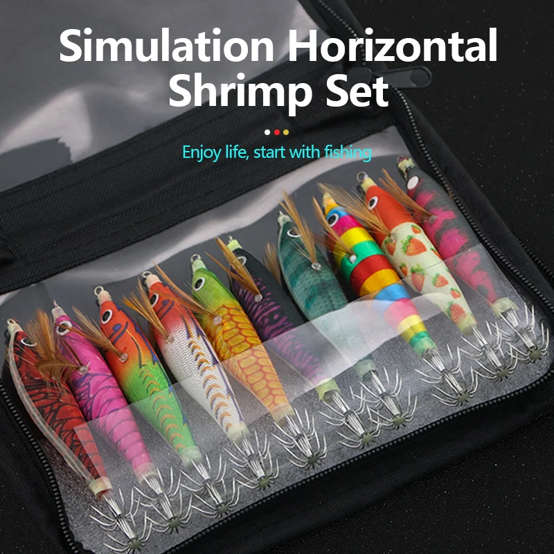 Anzuelo de calamar de camarón de madera artificial, cebo de pesca de calamar luminoso, cebo de pesca de camarón de madera, cebo falso, 10 piezas