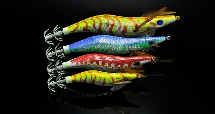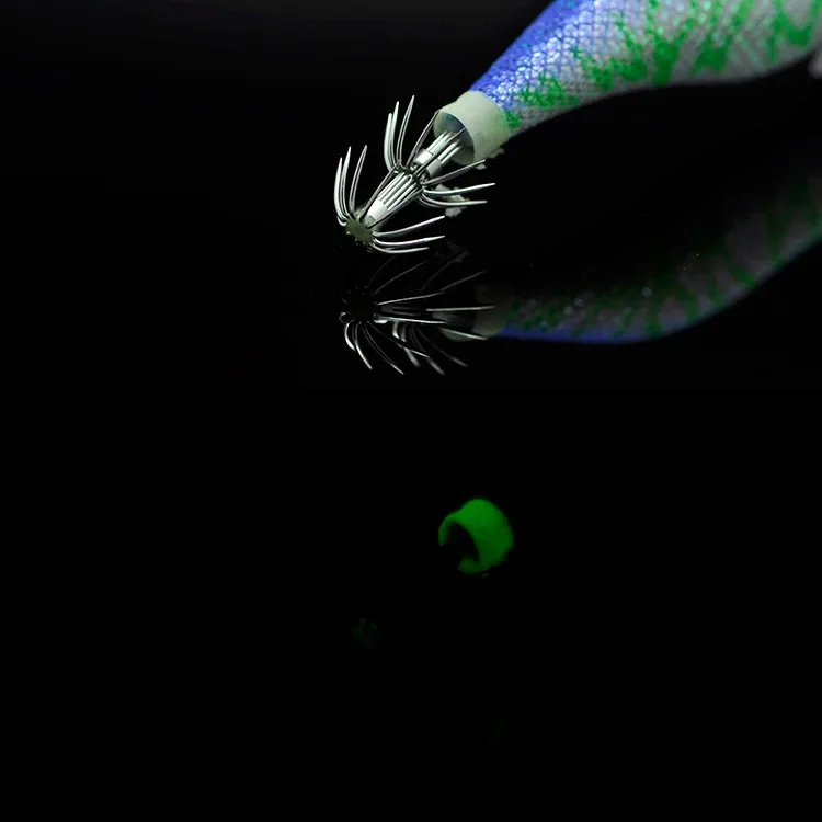 1 pieza gran oferta anzuelo de calamar y camarón de madera brillo nocturno de gama alta en la oscuridad Artificial camarones señuelos sepias 8/11/14/20g