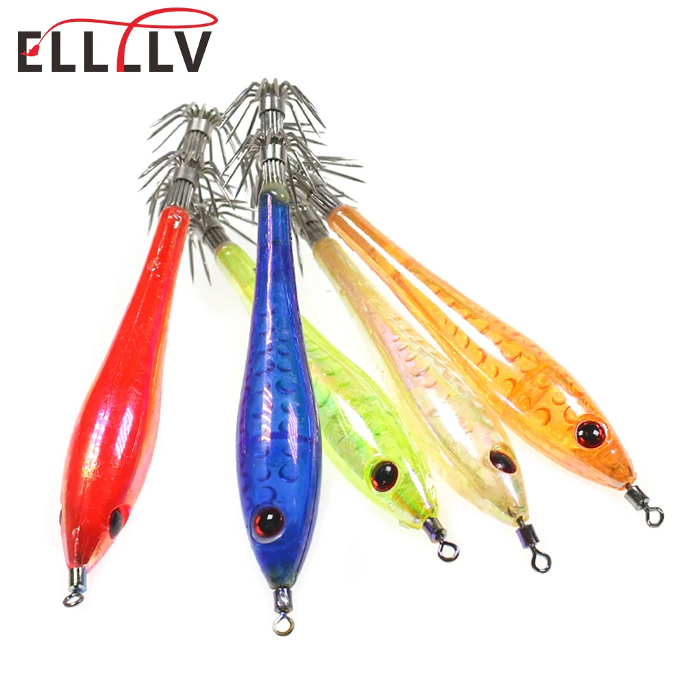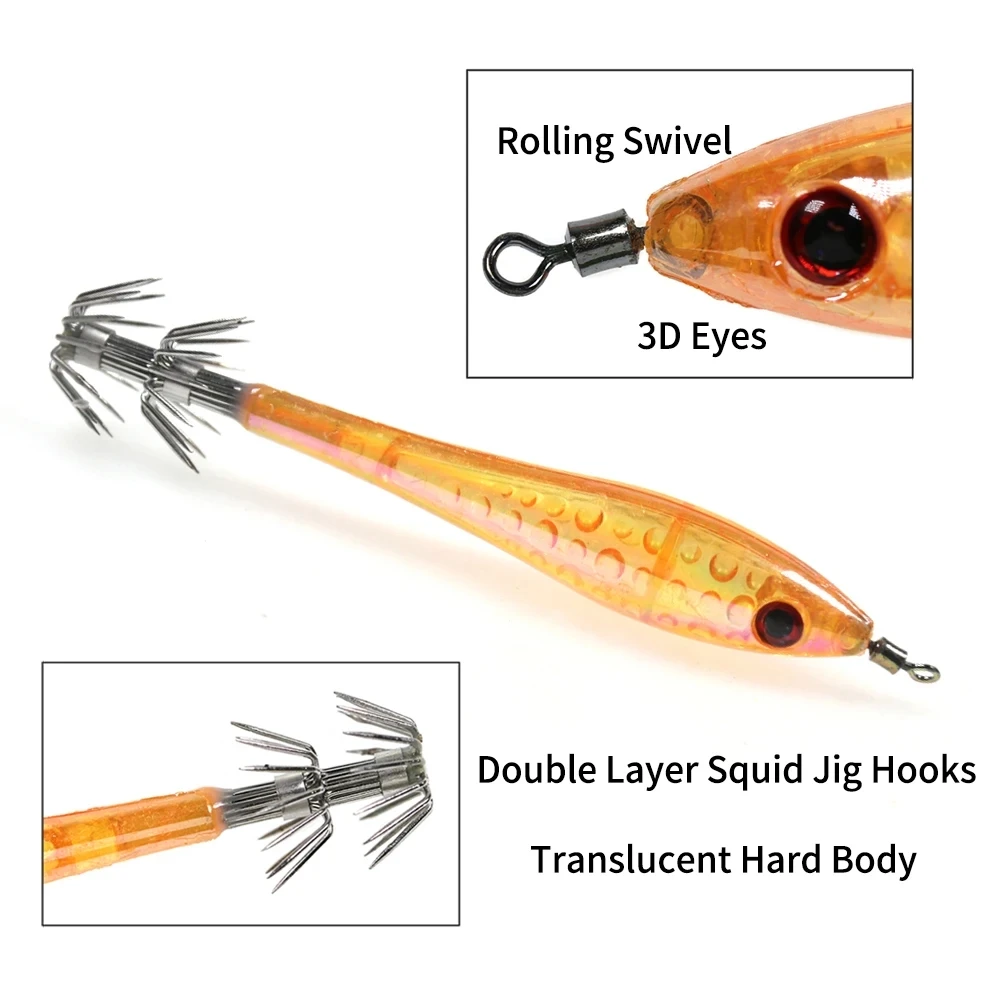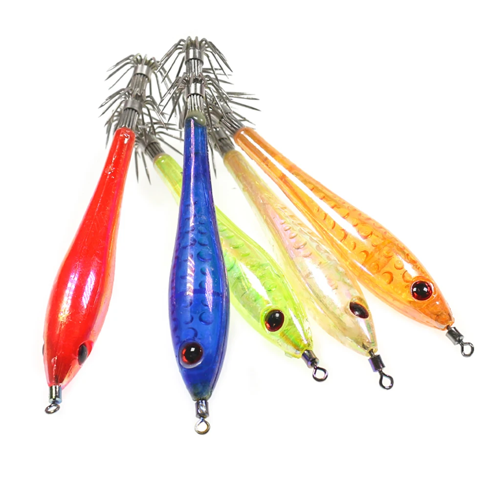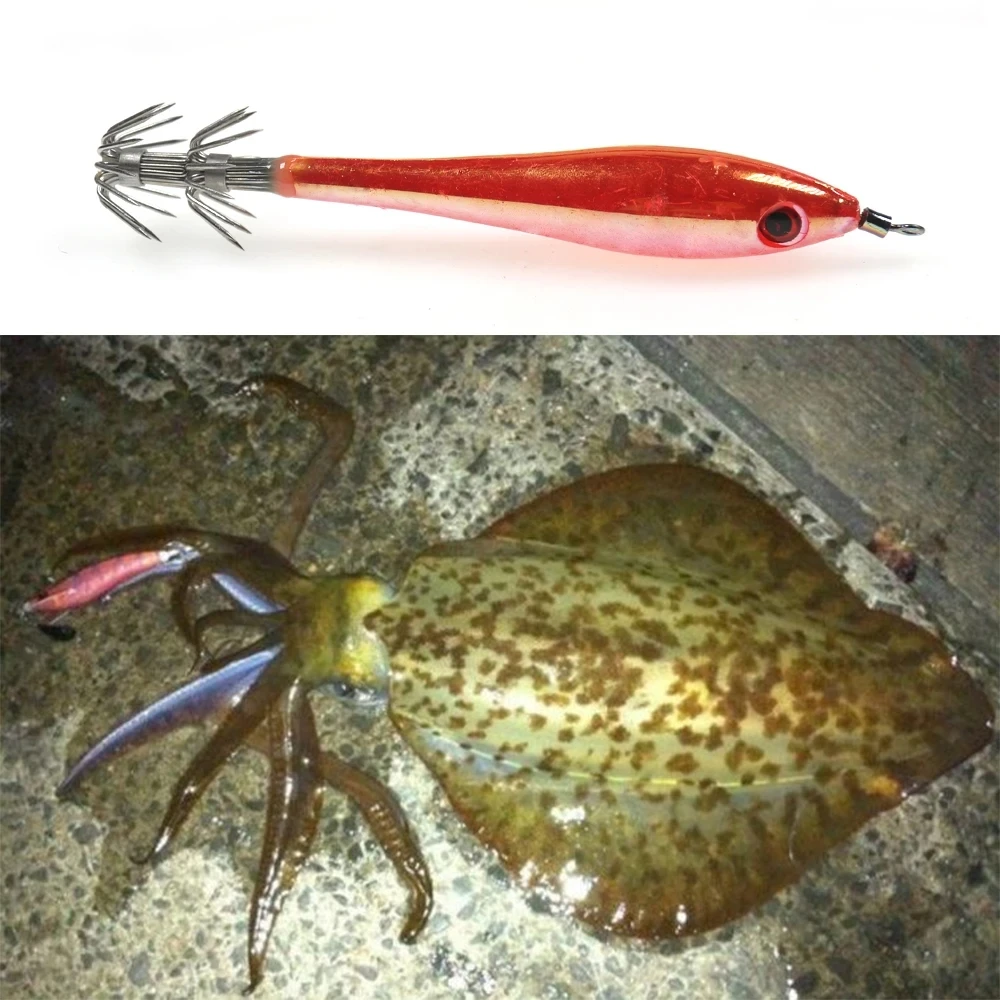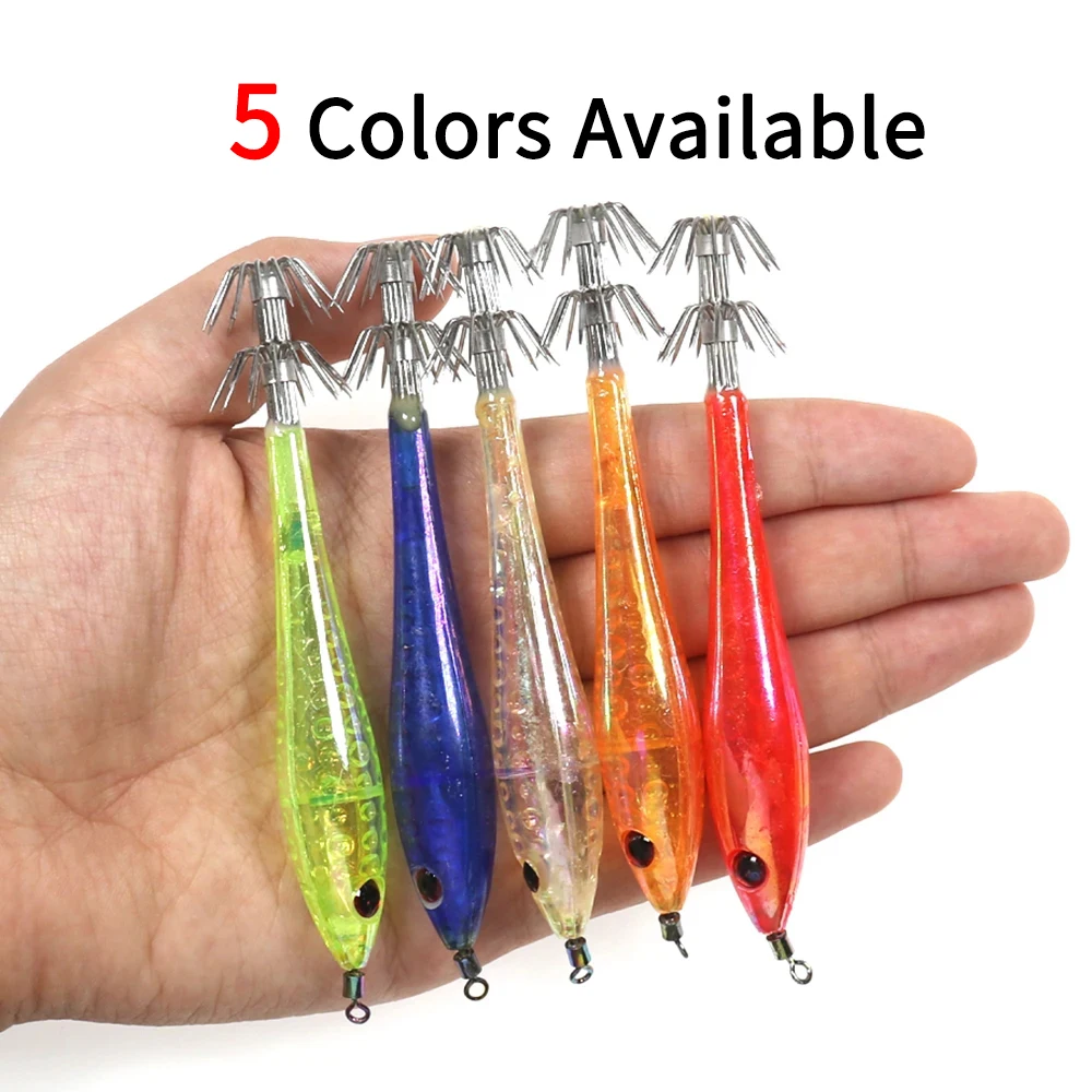 Anzuelo de calamar de 2 etapas, cebo de calamar, color verde, naranja, rojo y blanco, 5, 9,5 cm, 6g