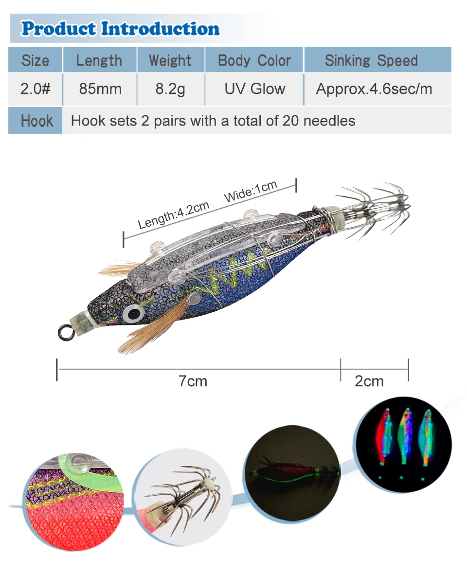 Anzuelo de calamar flotante, señuelo de pesca de plástico Artificial, aparejos de cebo de sepia, barco de mar, 85mm, 8,2g, 2 piezas