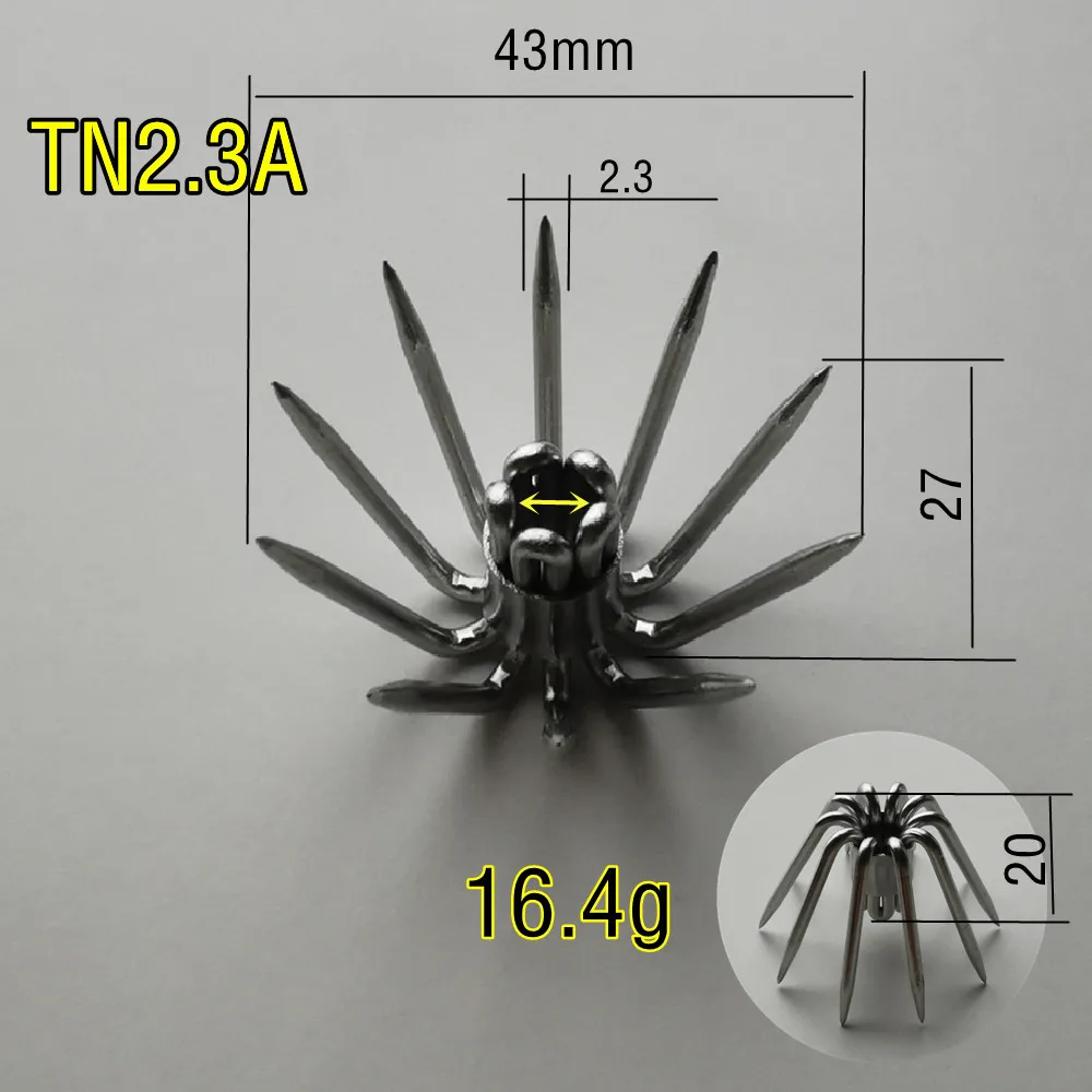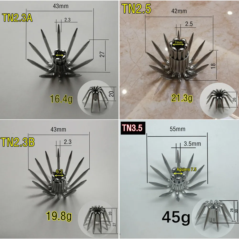 Anzuelo de calamar grande, anzuelo de 2,5/2,3/2,0mm de acero inoxidable, jibia grande, garra de araña, corona, pesca artesanal, 10 piezas