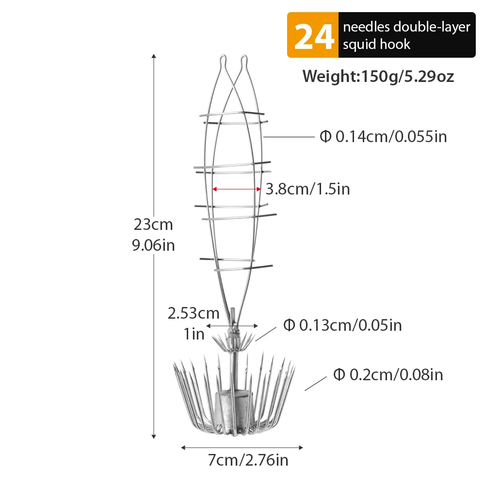 Anzuelo de calamar grande de doble capa, anzuelo de pulpo de 100g-200g, señuelo de pesca marina, 22 garras-26 garras, 1 unidad
