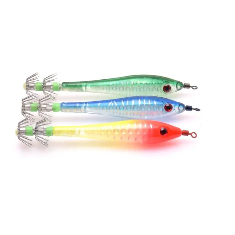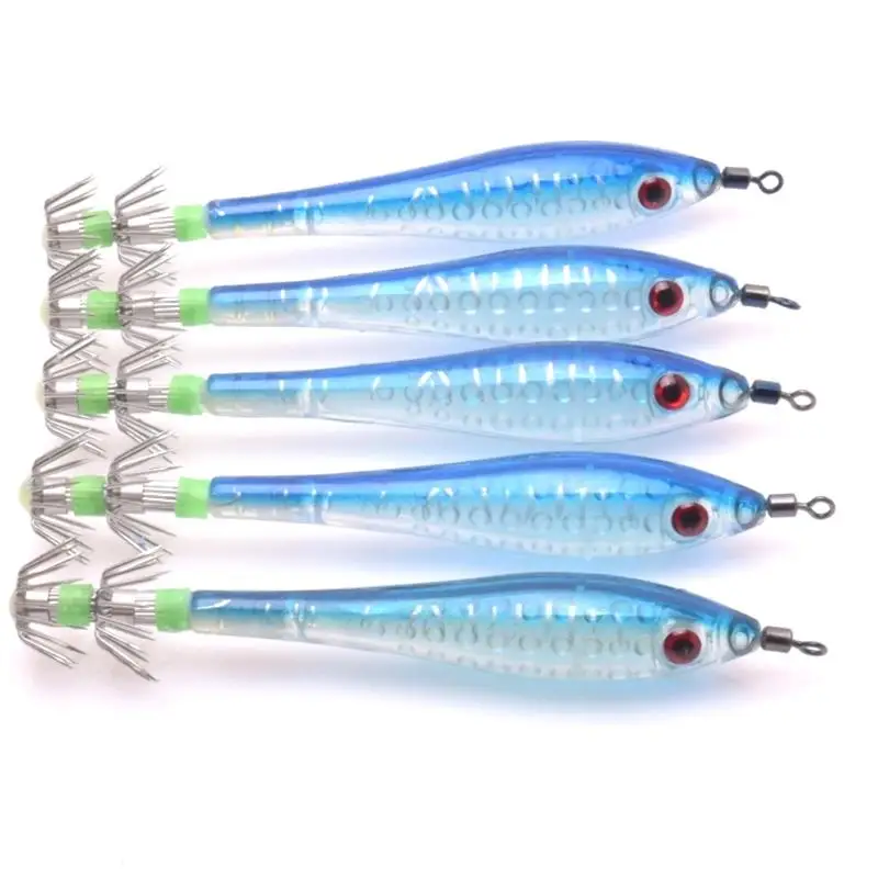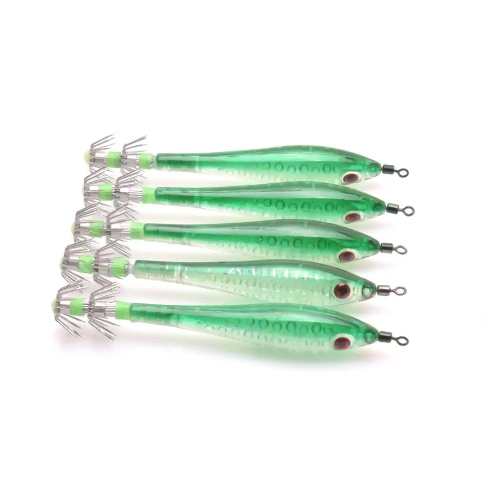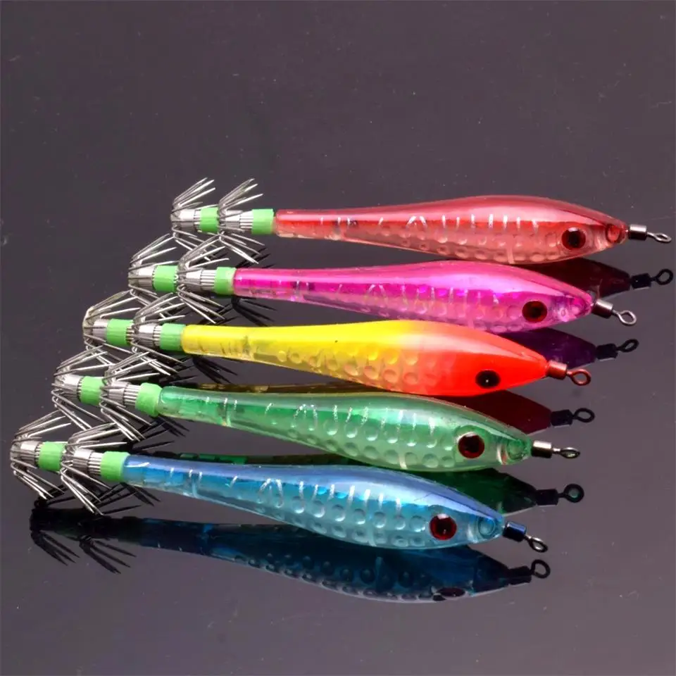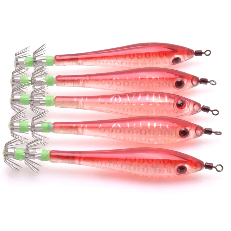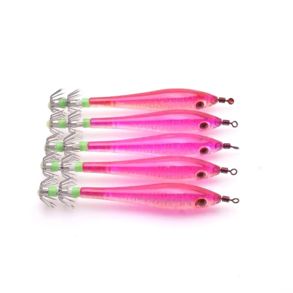 Anzuelo de calamar importado, accesorios de pesca, doble paraguas, No. 4 rollo de madera, tubo de soplado de camarones, 5 unidades por bolsa