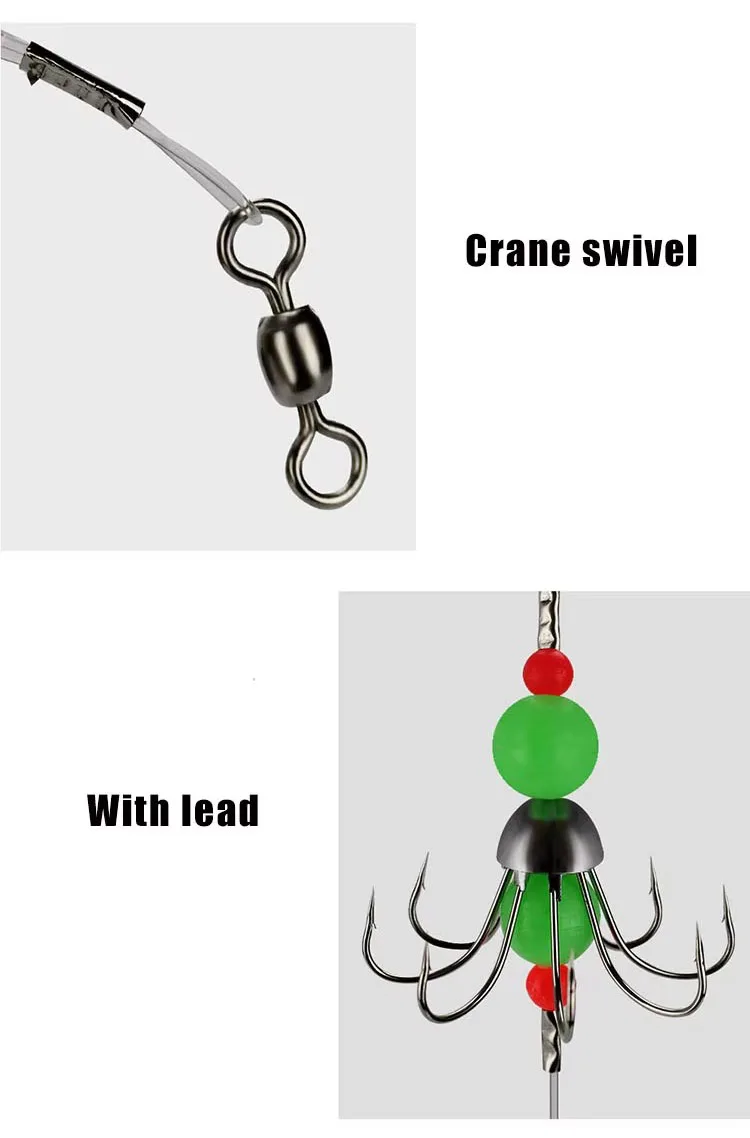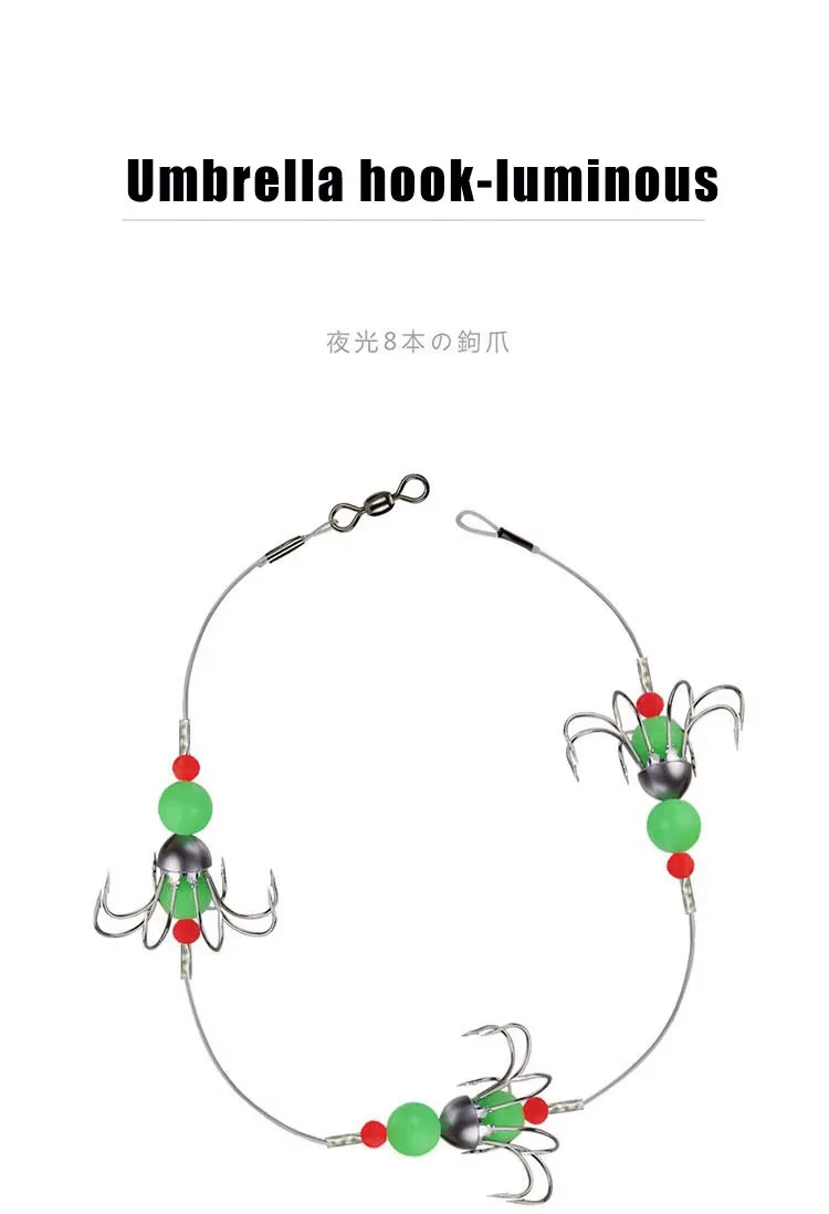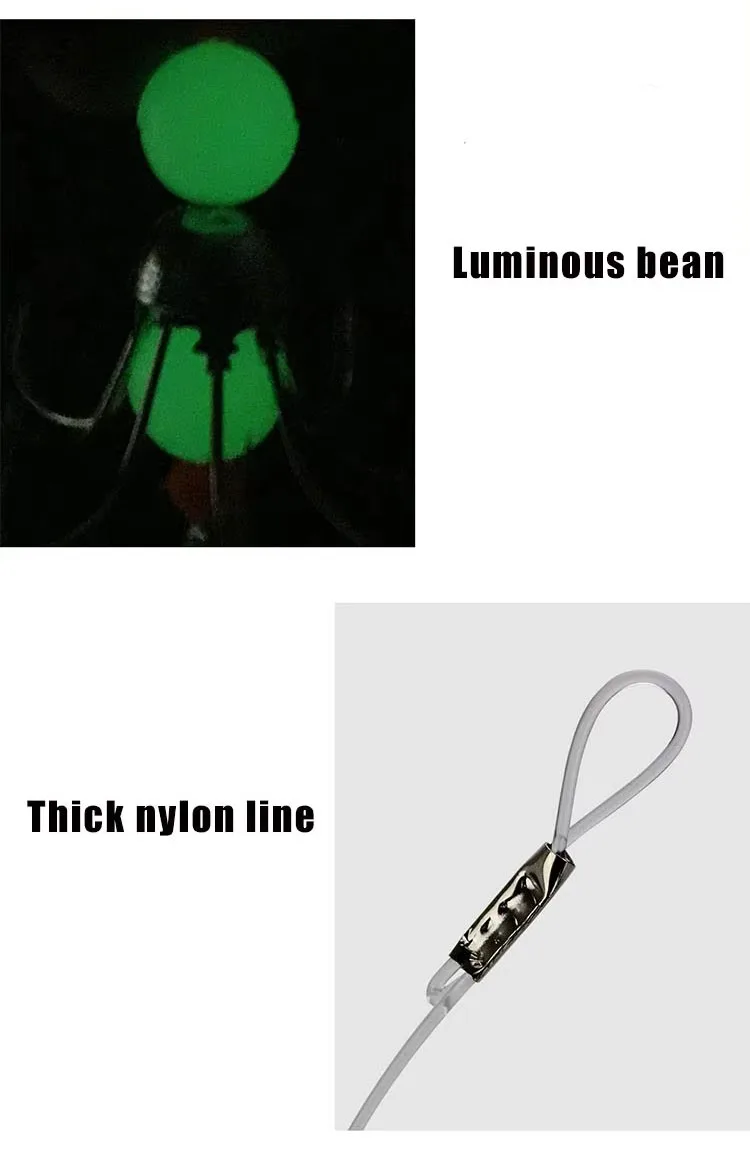 Anzuelo de pesca de calamar, gancho de cuerda, gancho de plomo de ocho garras con cuentas brillantes, anzuelos de pulpo en la herramienta de pesca nocturna, equipo de pesca
