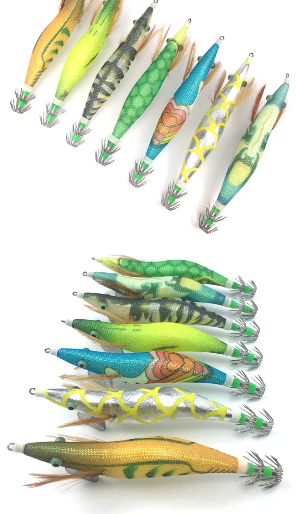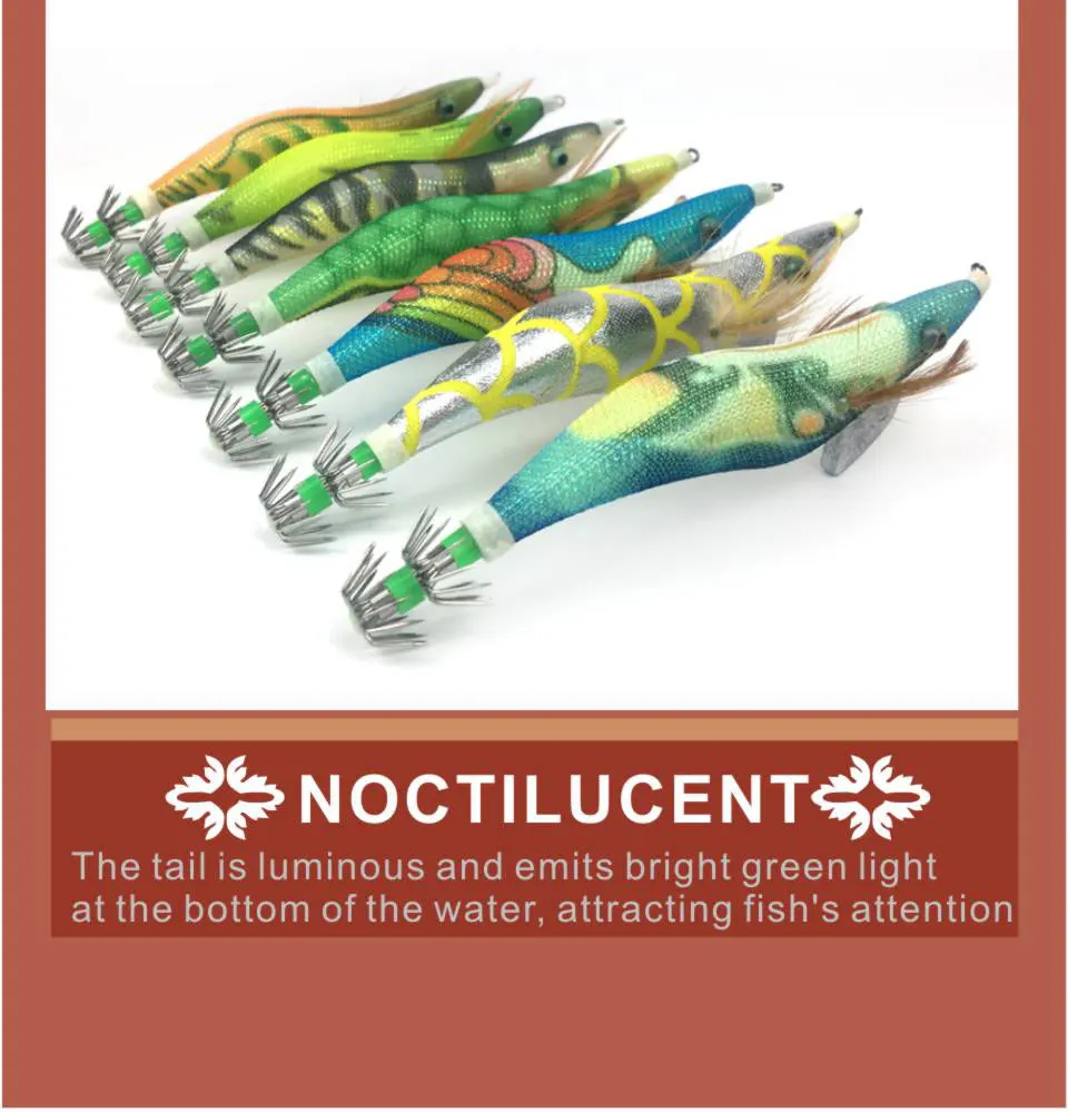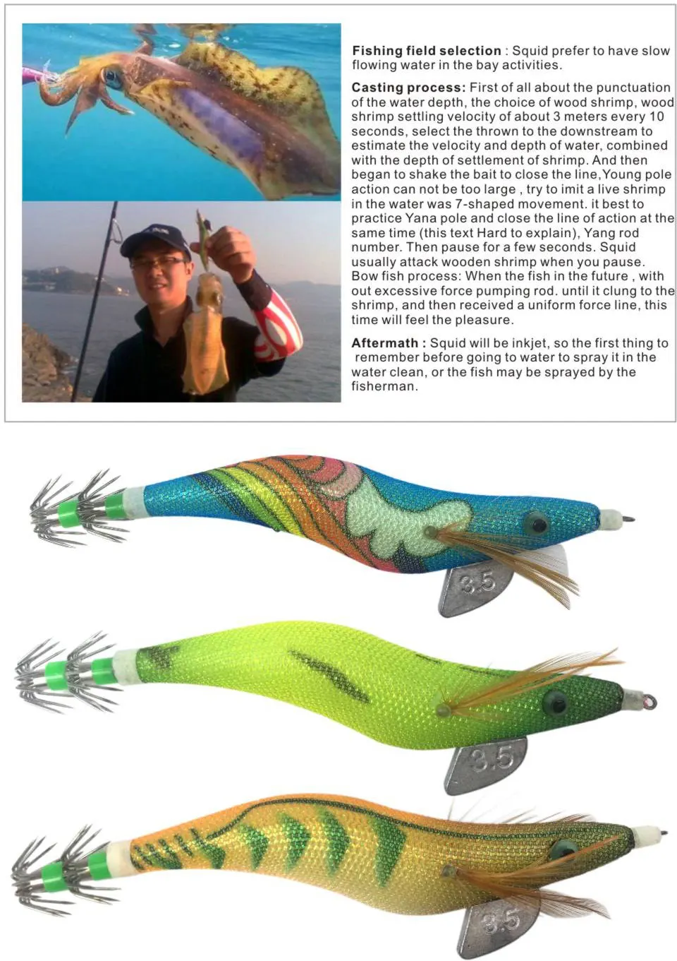 Anzuelo de calamar de madera para pesca de agua salada, luminoso de señuelo 3,5g, anzuelo Wth, plomo, plomo, ojos 3D, pulpo, sepia
