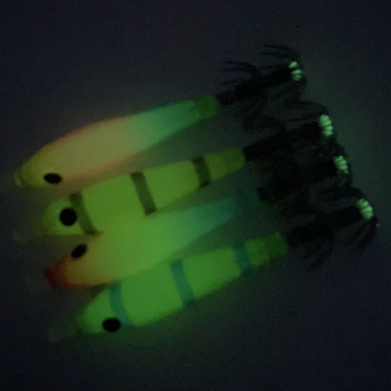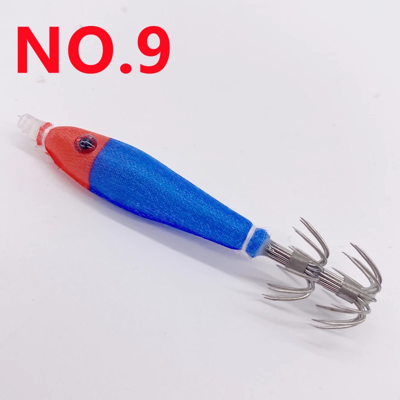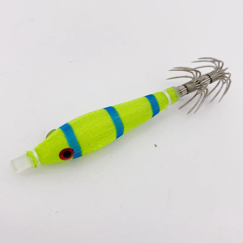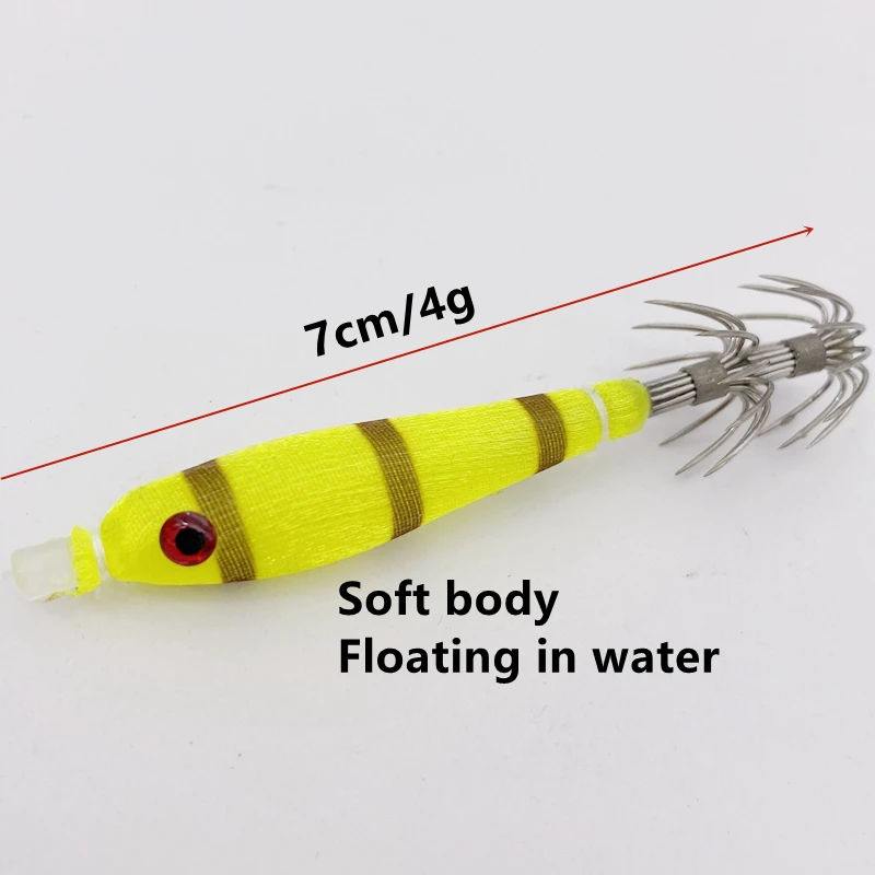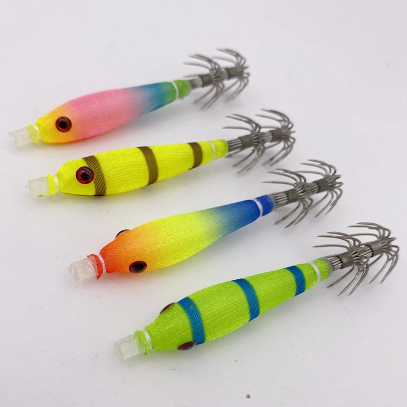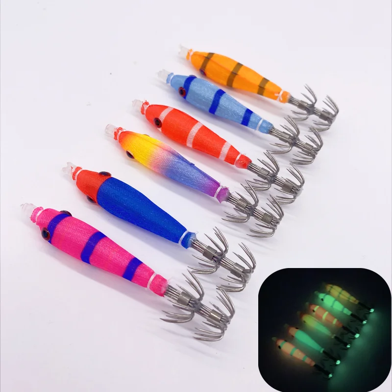 Anzuelo de calamar de madera para pesca, rollo de 4gCloth, luminoso, UV, tubo de soplado, plantilla de pulpo, camarón, gancho de explosión, 2 uds. X 7cm