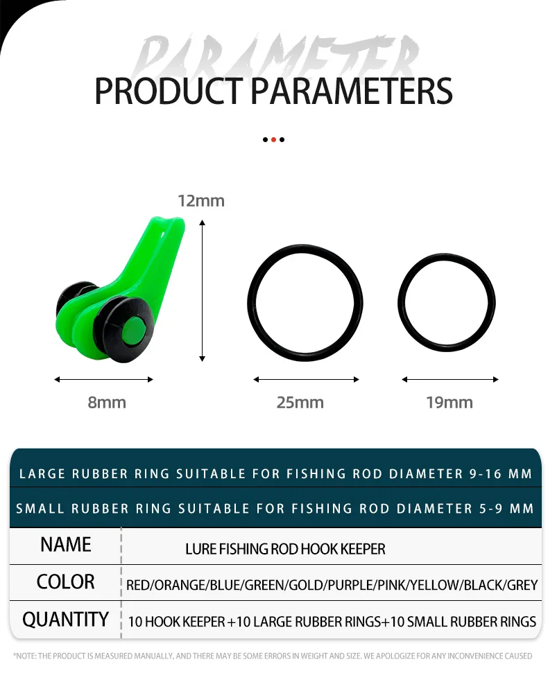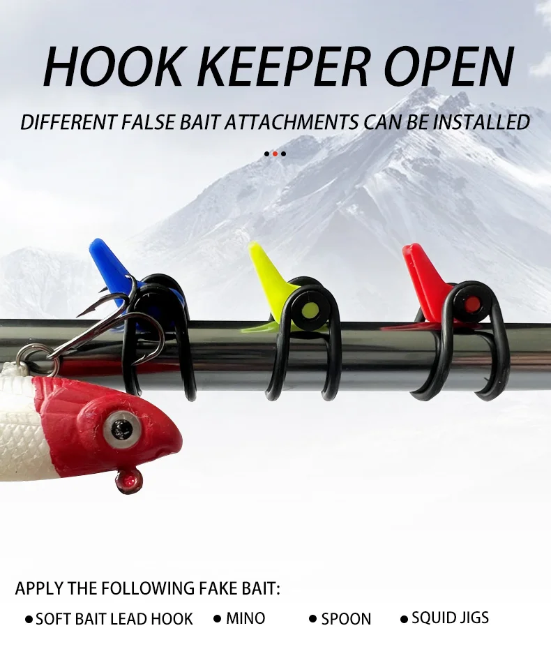 10 unids/bolsa caña de pescar gancho Keeper con 2 anillos de goma elásticos de tamaño caña de pescar gancho de seguridad señuelo Keeper titular