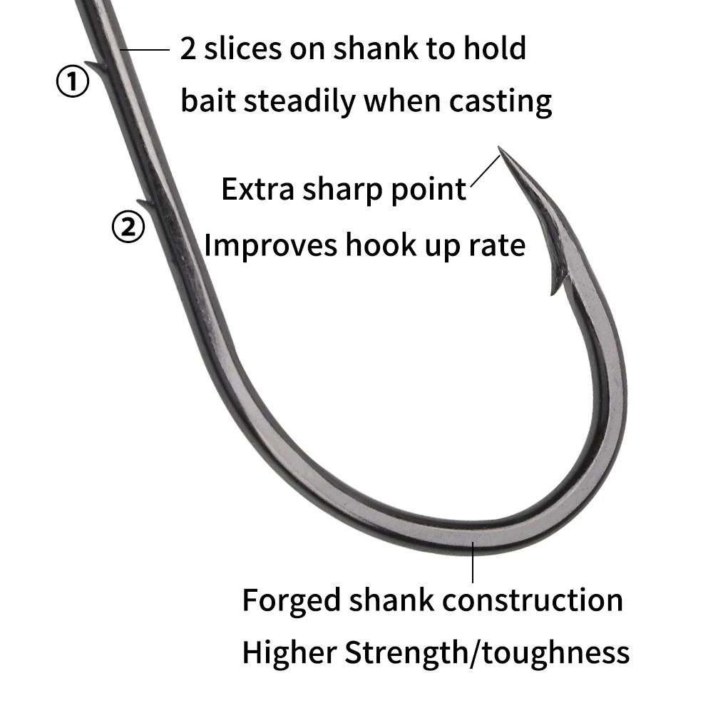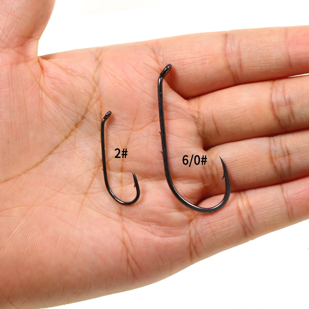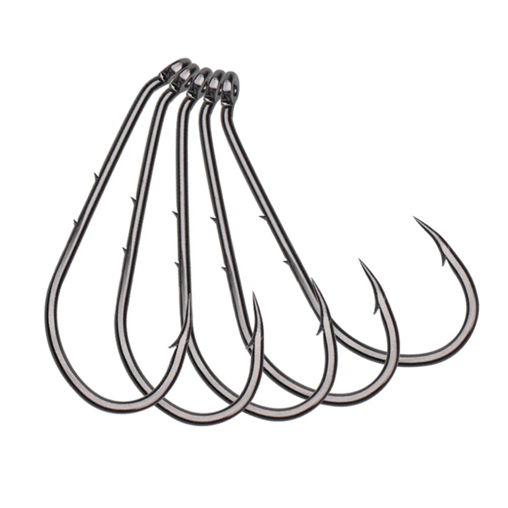 Anzuelo de cebo de acero al carbono con punta de compensación de níquel negro, aparejo de pesca de agua salada, anzuelos de cebo vivo, 50/12 # -6/0, 12/