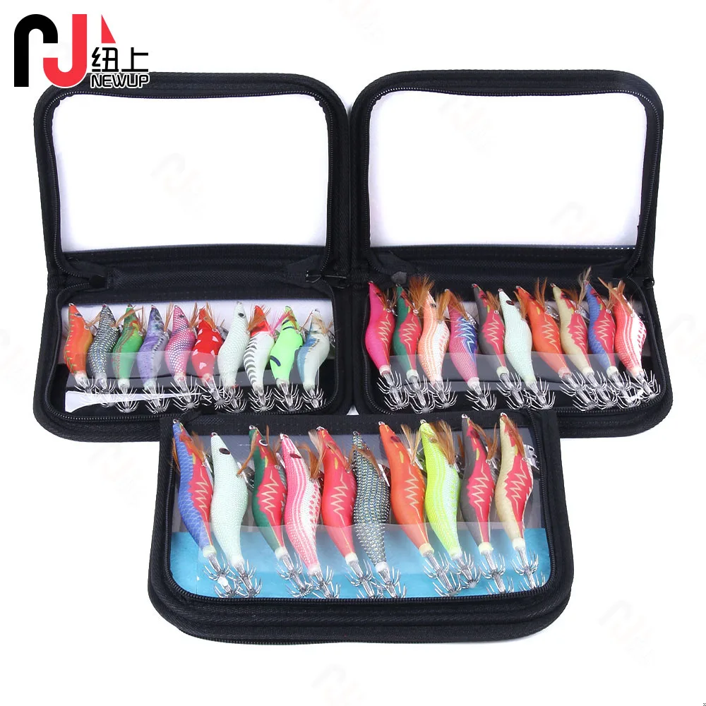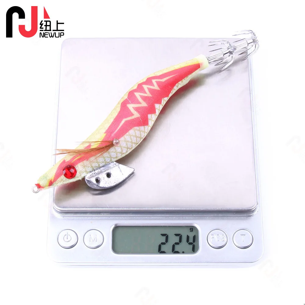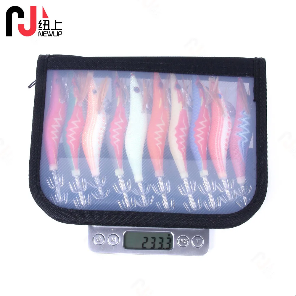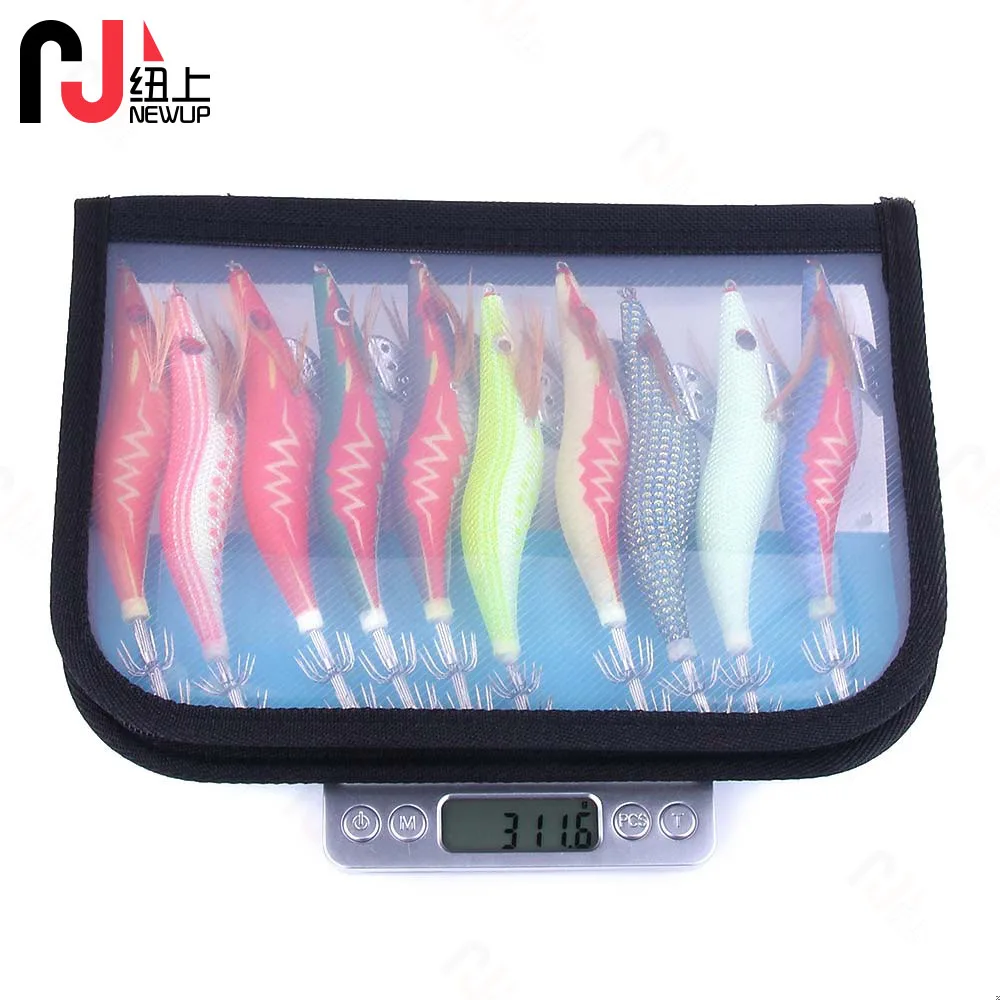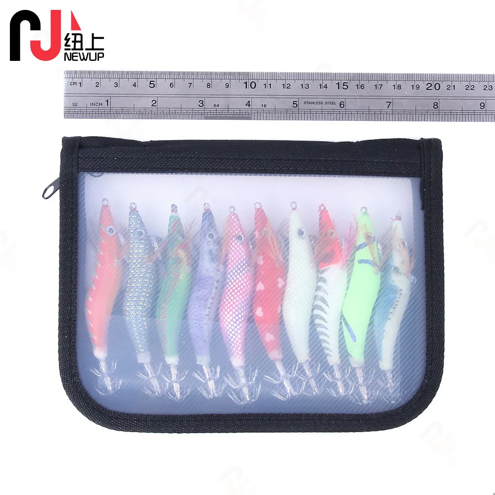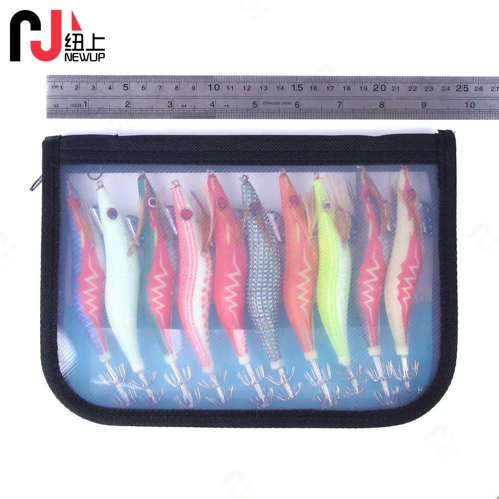 10 unids/bolsa anzuelo de cebo de calamar anzuelo de camarón de madera Señuelos de Pesca anzuelos de madera señuelo de jigging luminoso Artificial