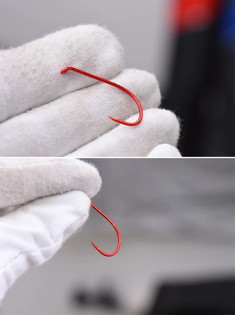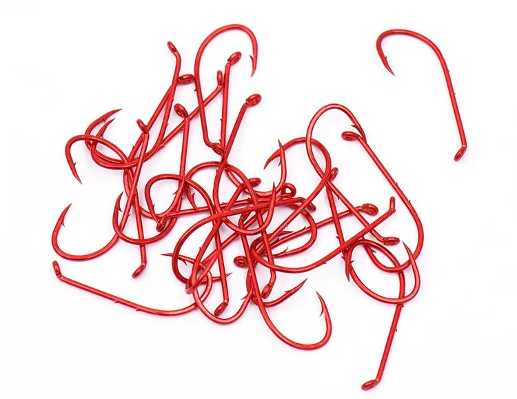 Anzuelo de pez Bent Eye Red Baitholder con picos de vástago para soporte de cebo de gusano Snell tamaño 1/0 1 2 4 6 8