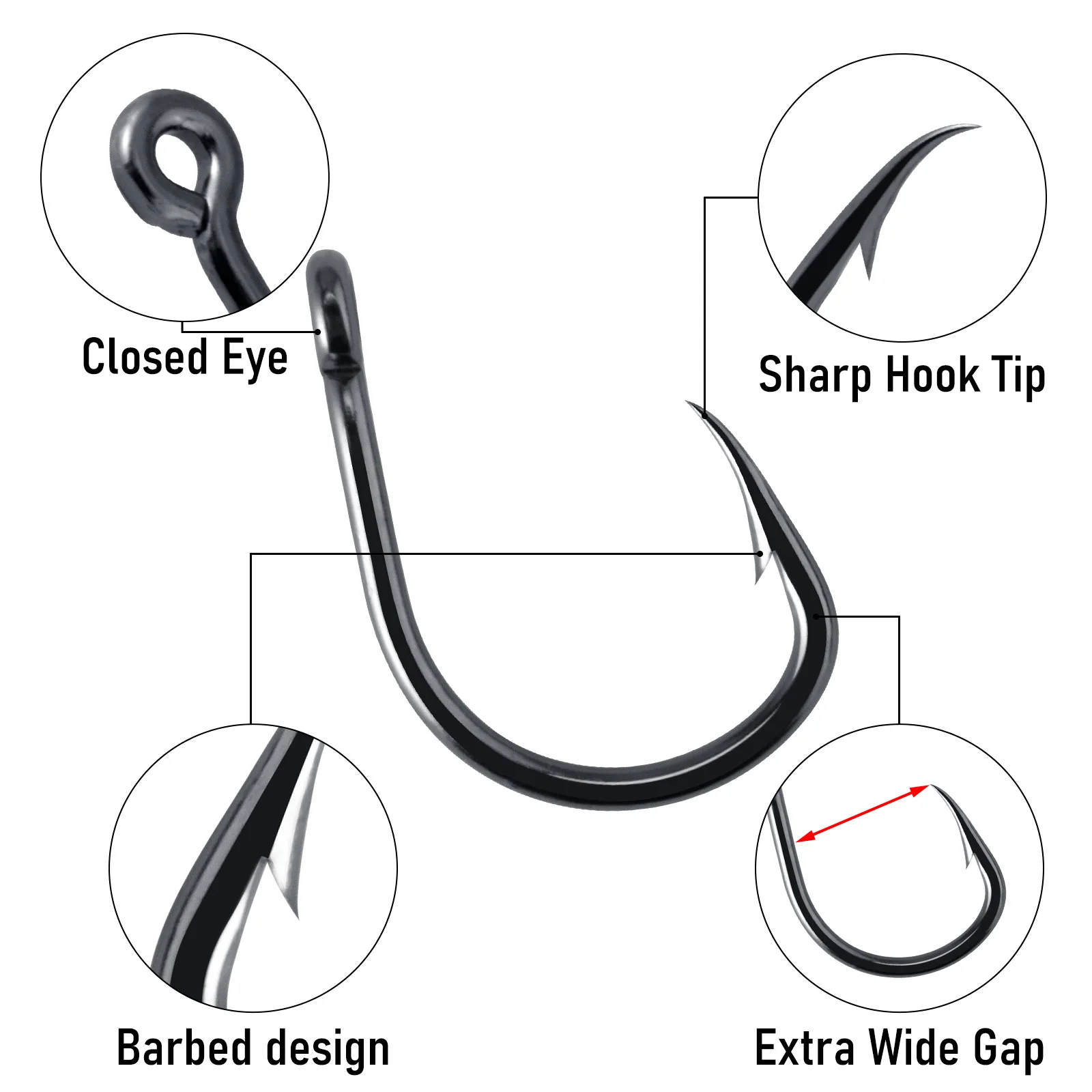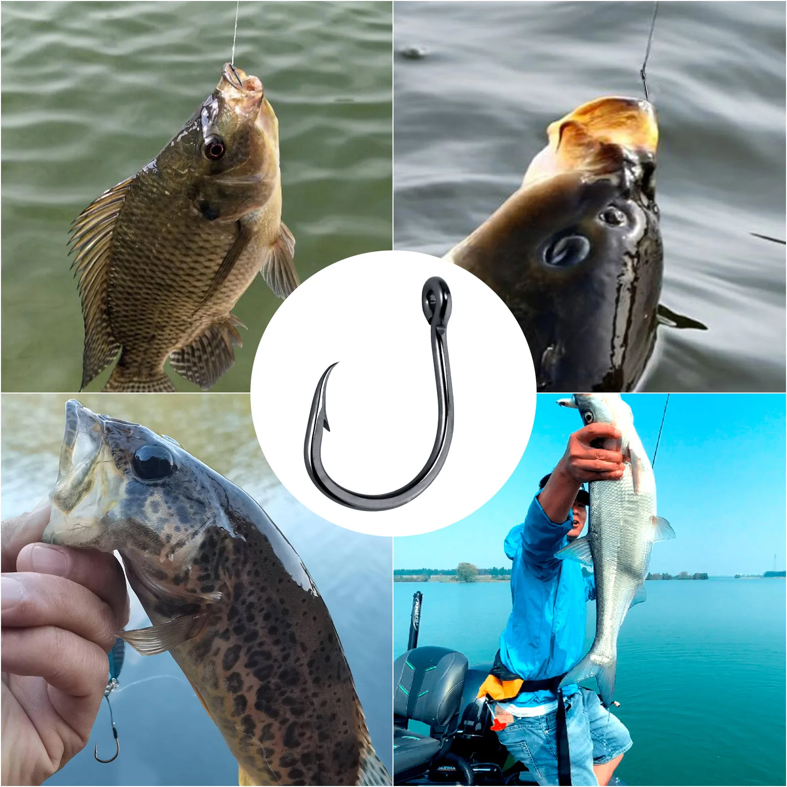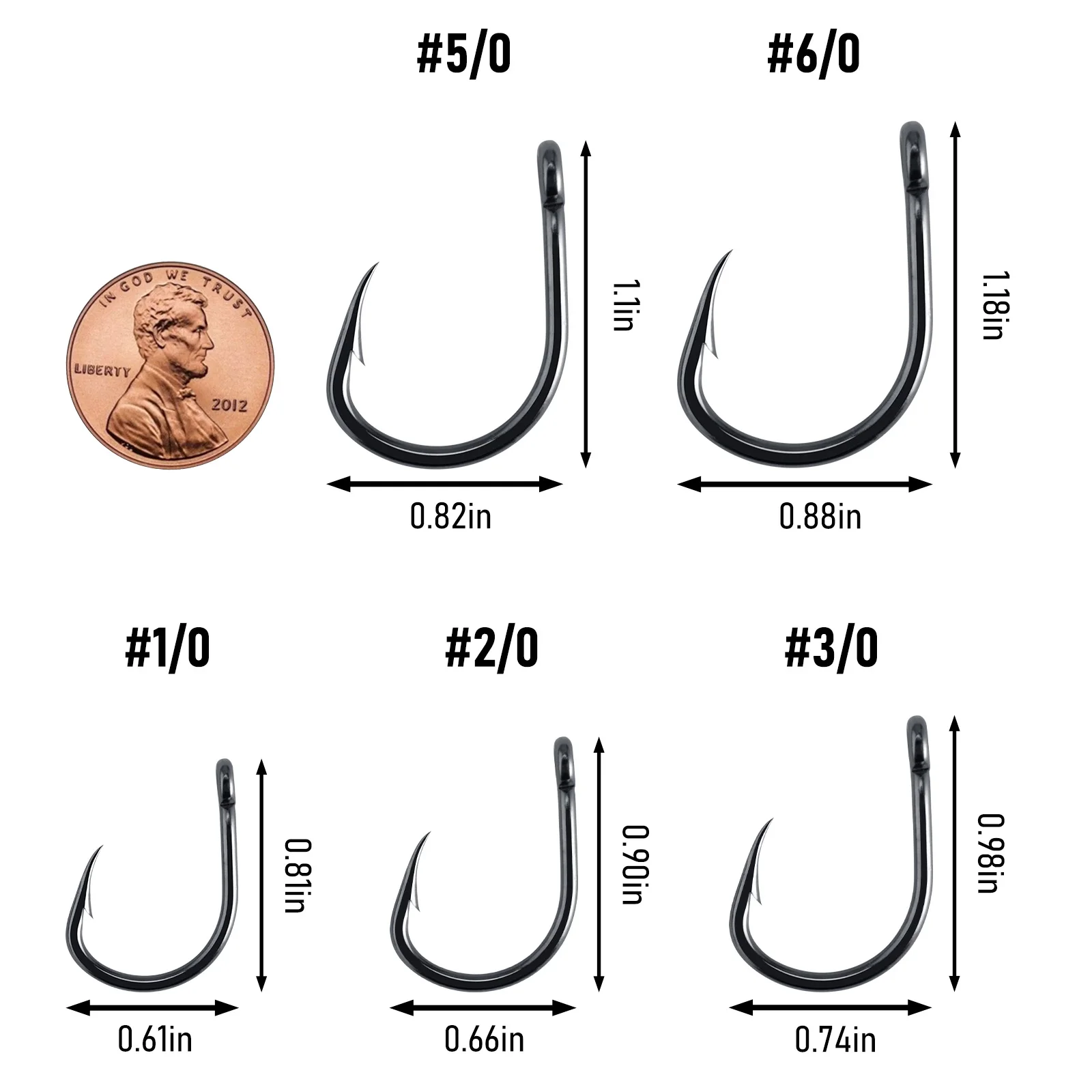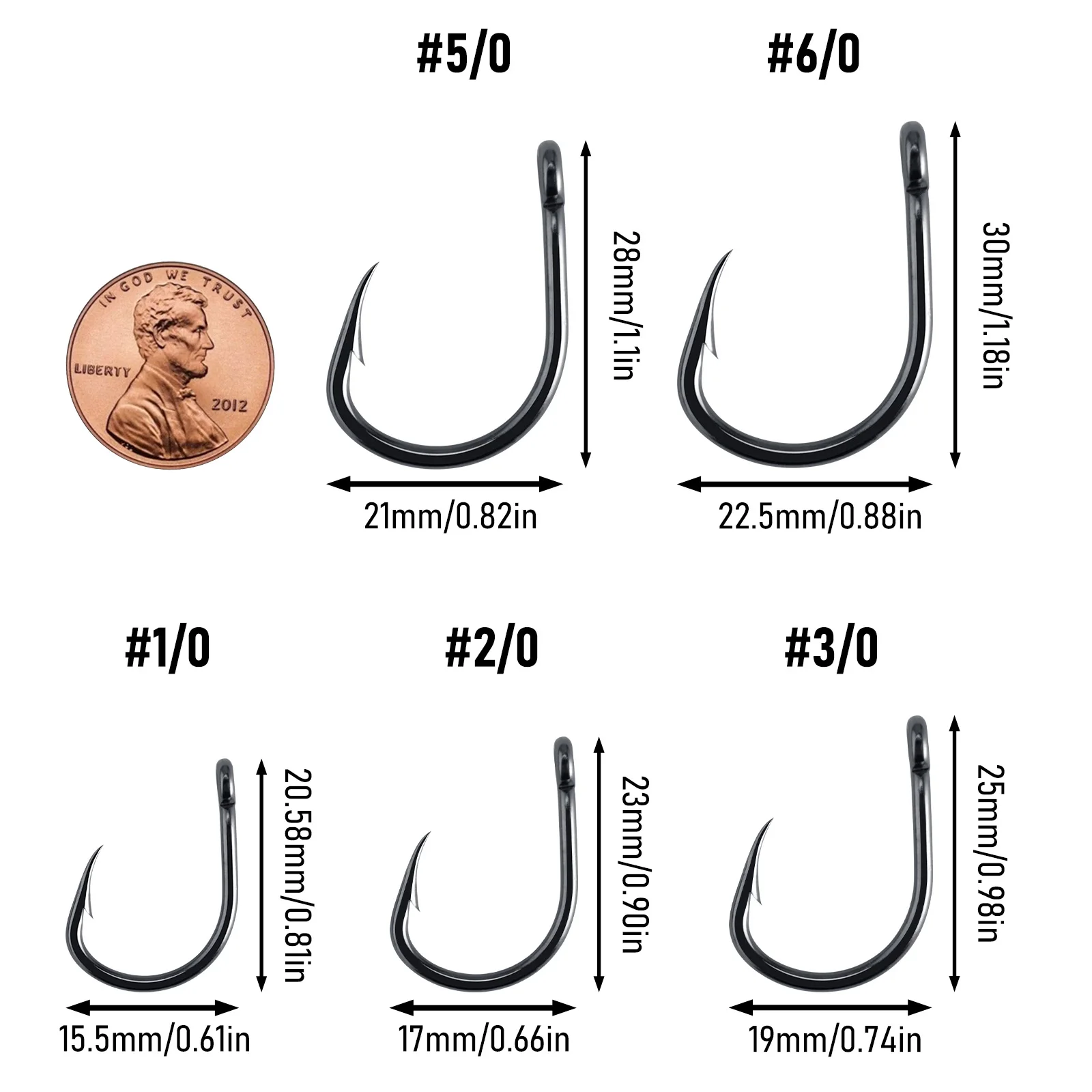 Anzuelo de cebo vivo 1/0-6/0, anzuelo de pesca de agua salada, anzuelos circulares de acero rico en carbono de alta resistencia para pesca de Surf, pelador de bagre