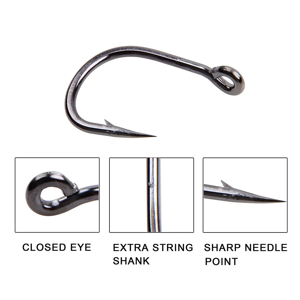 2. PUNTA DE AGUJA AFILADA: acero inoxidable Premium fuerte, que le da a los ganchos la máxima fuerza. Anzuelo de pesca de vástago corto con punta de aguja para facilitar la penetración.