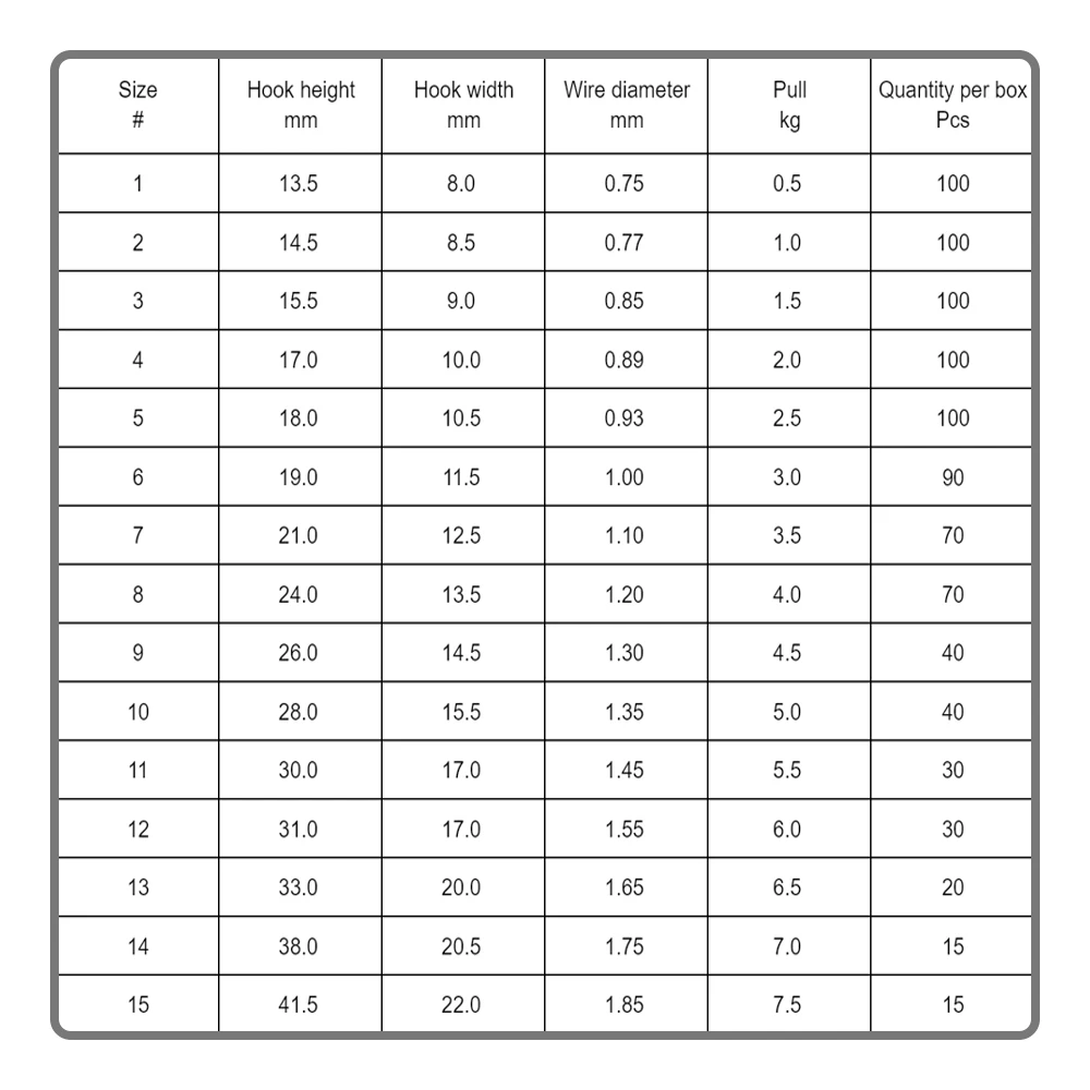 1# 100 piezas /2# 100 piezas /3# 100 piezas/4# 100 piezas/5# 100 piezas/6# 90 piezas/7# 70 piezas /8# 70 piezas /9# 40 piezas /10# 40 piezas /11# 30 piezas /12# 30 piezas /13# 20 piezas /14# 15 piezas /15# 15 piezas 。