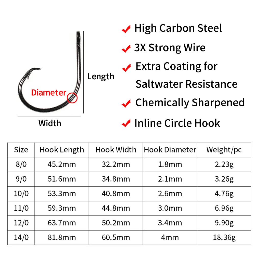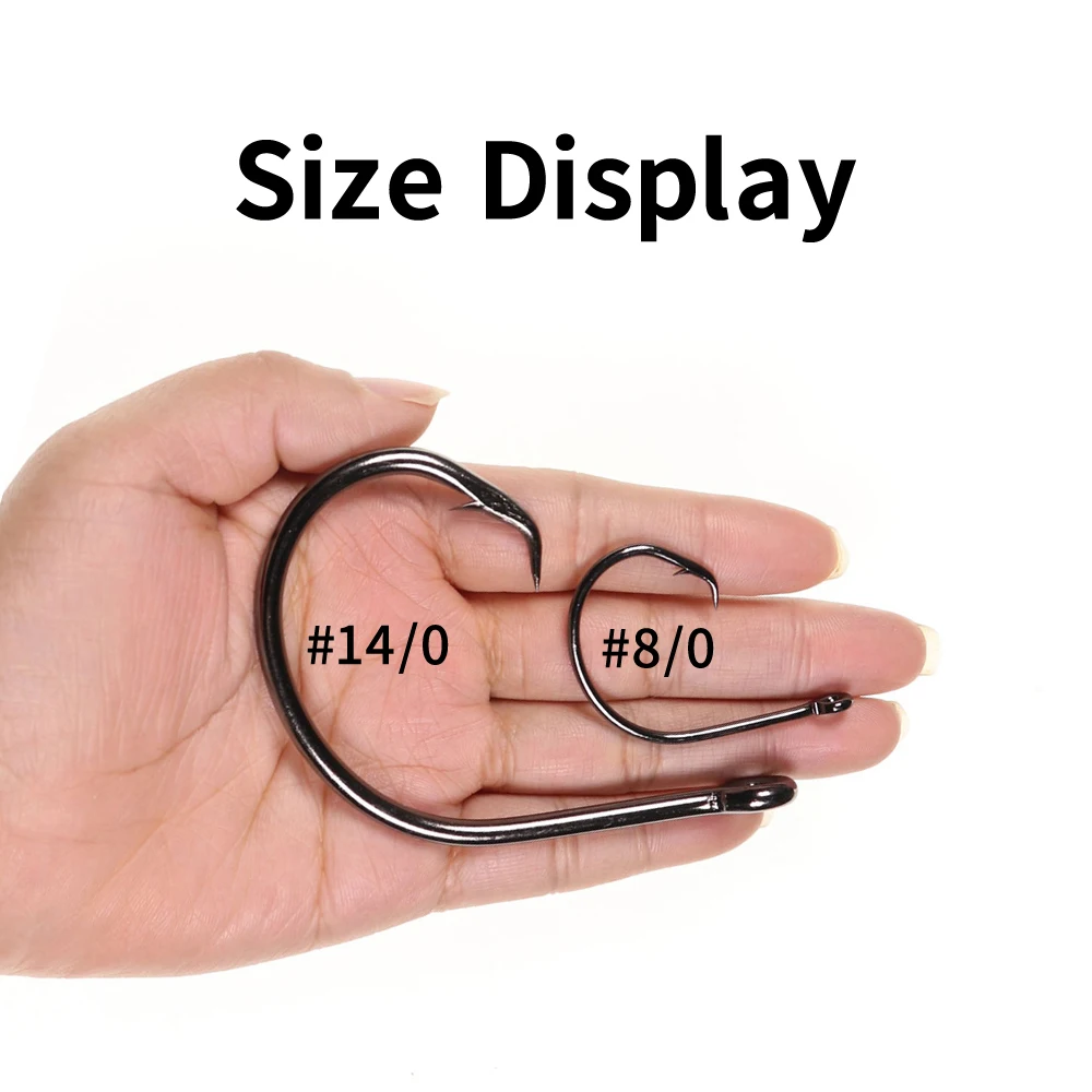 Anzuelo Circular de Pesca de agua salada de alambre fuerte, anzuelo de curricán grande de acero de alto carbono para pesca en barco de tiburón atún 8/0 - 14/0, 20/50/30/