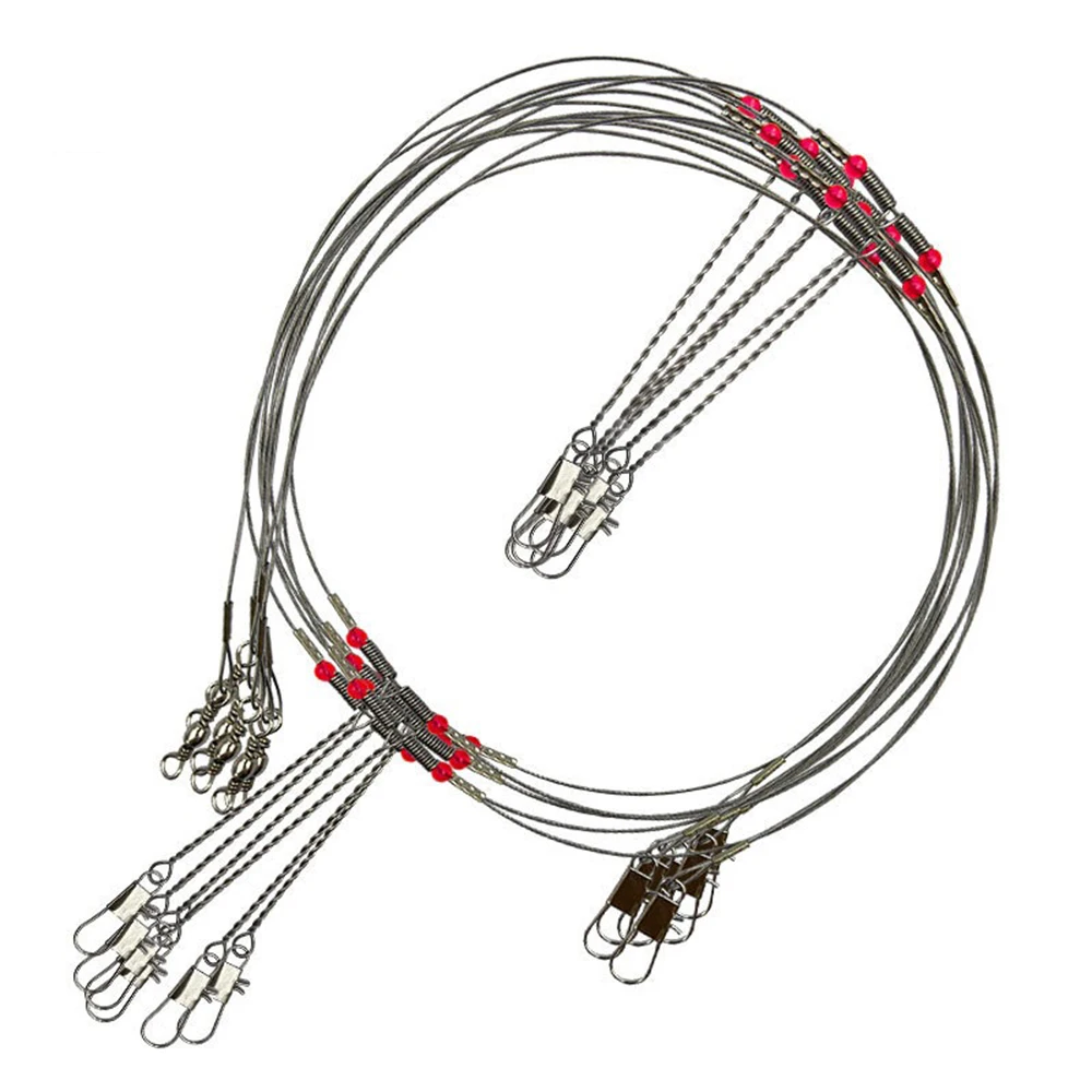 5 piezas de cuerda de acero, anzuelo de pesca giratorio, línea de alambre de pesca, alambre de cuerda, broches de seguridad, Trace líder con equipo de engranaje de alambre de pez a presión