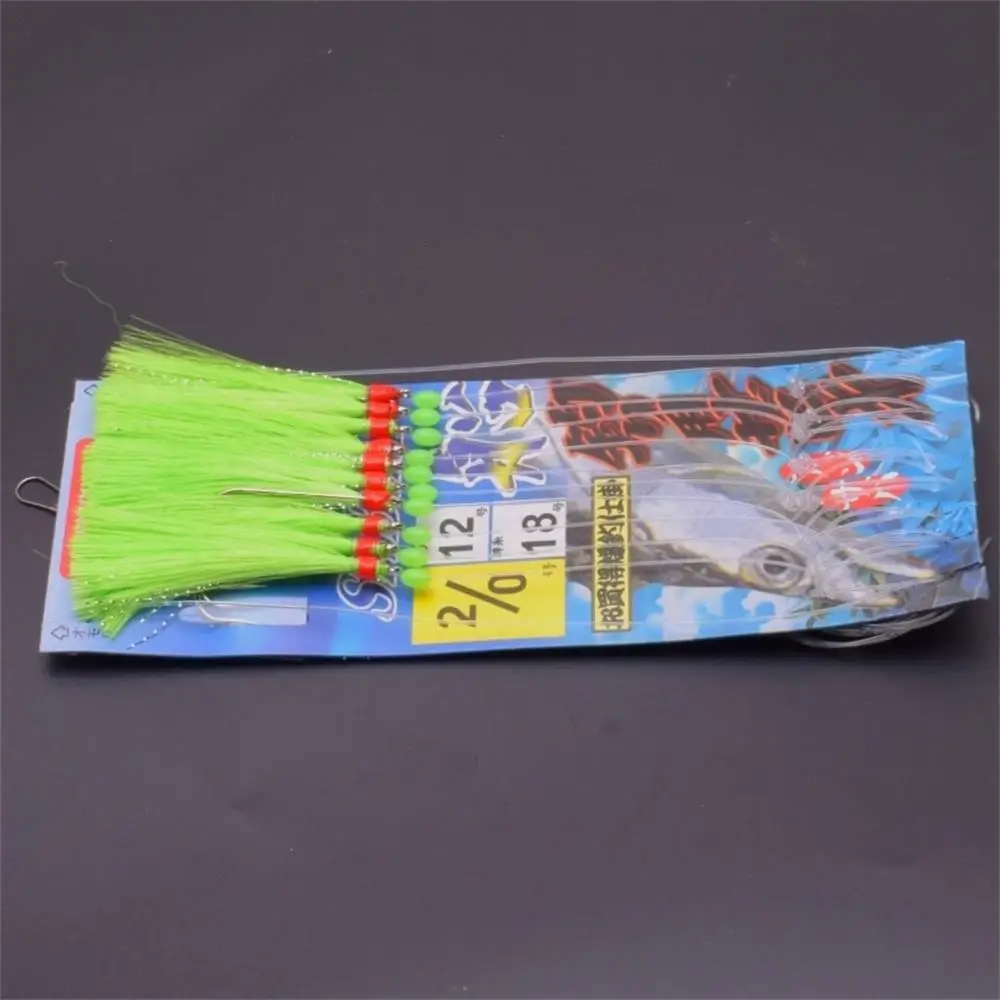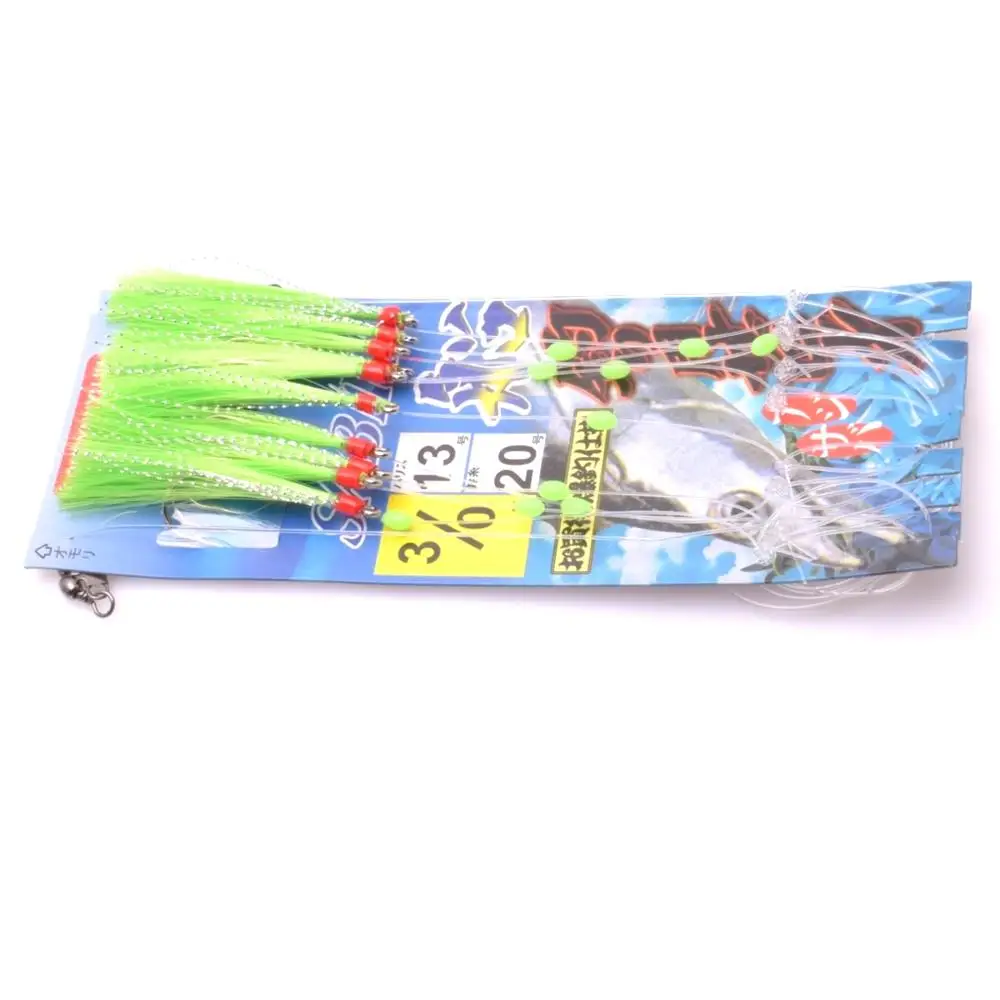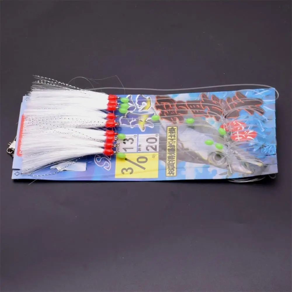 Anzuelo de cuerda simulado, pelo blanco, pelo verde, 10 anzuelos, anzuelo luminoso, anzuelo de piel de pescado, pesca en el mar, anzuelo de pesca en barco, caballa