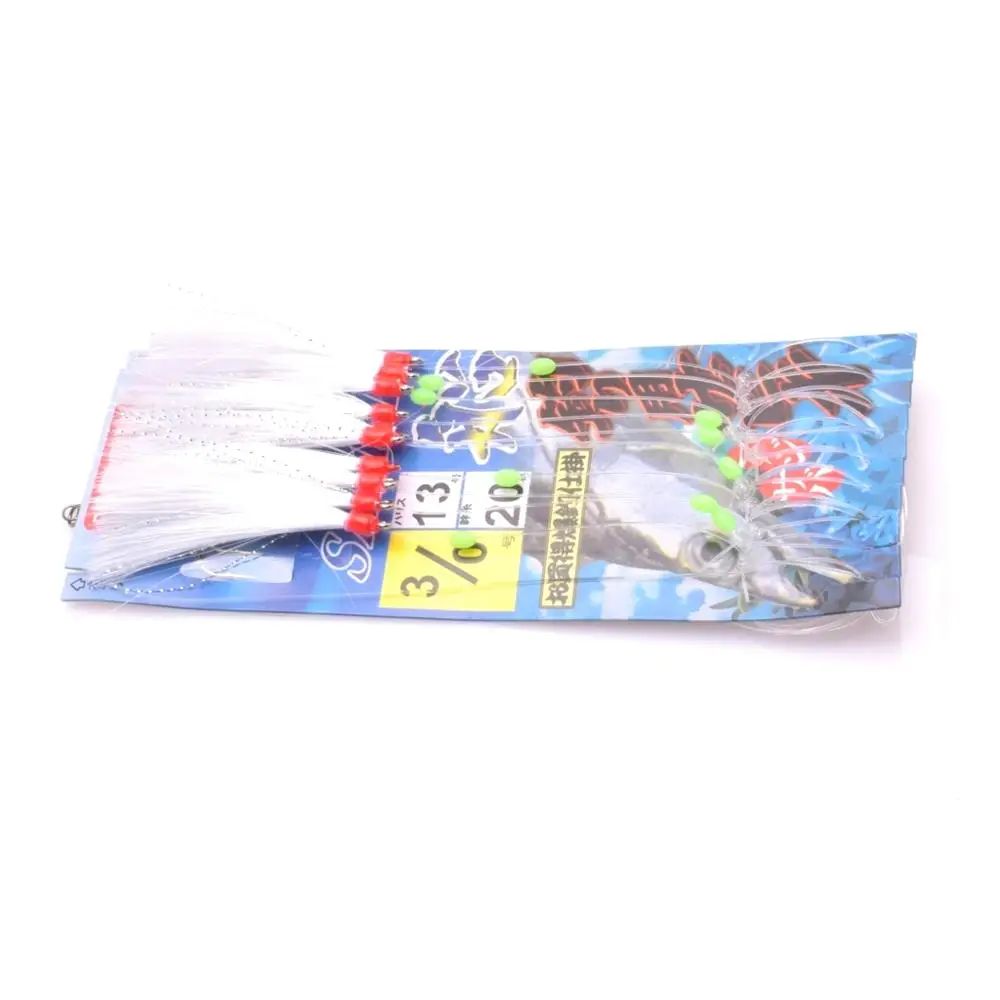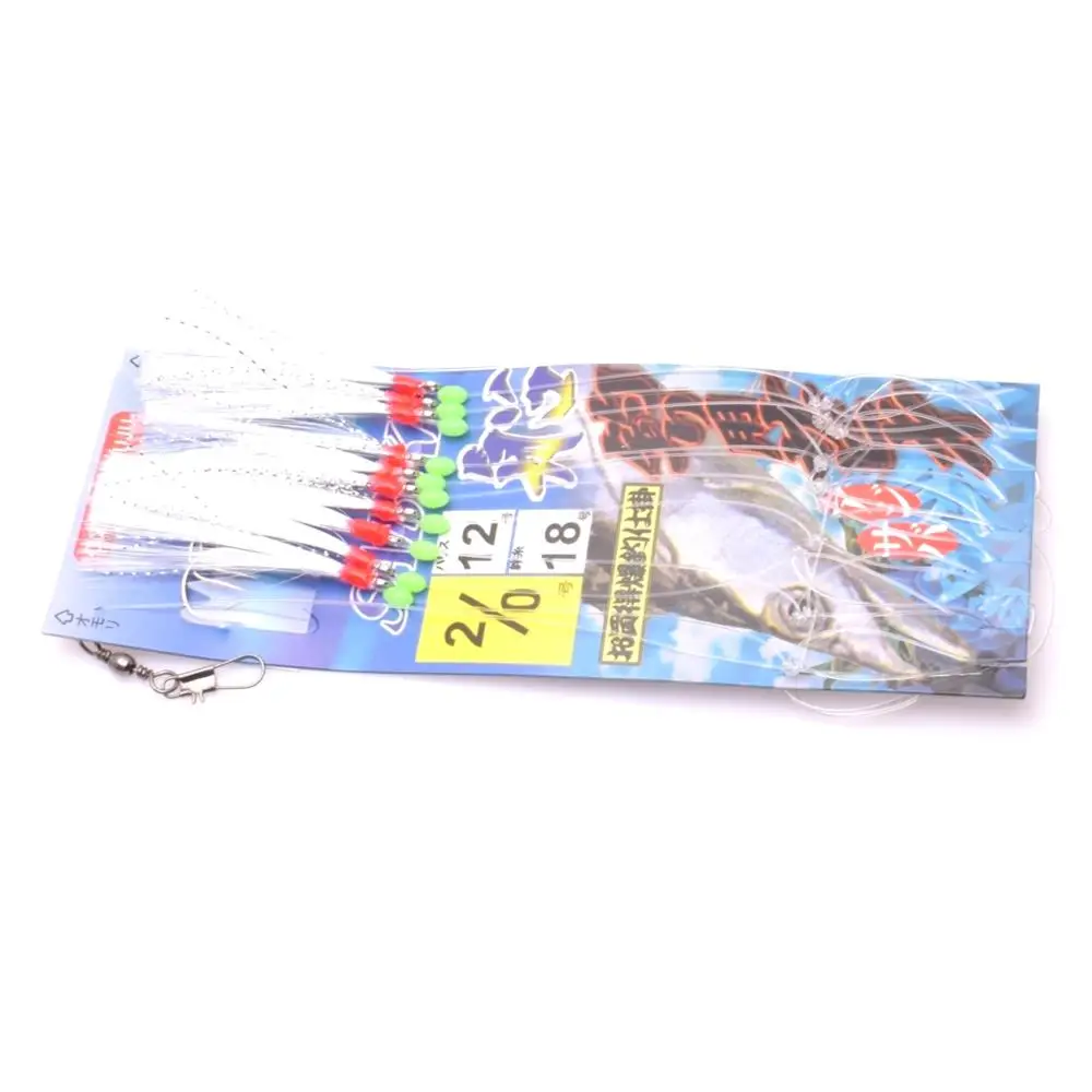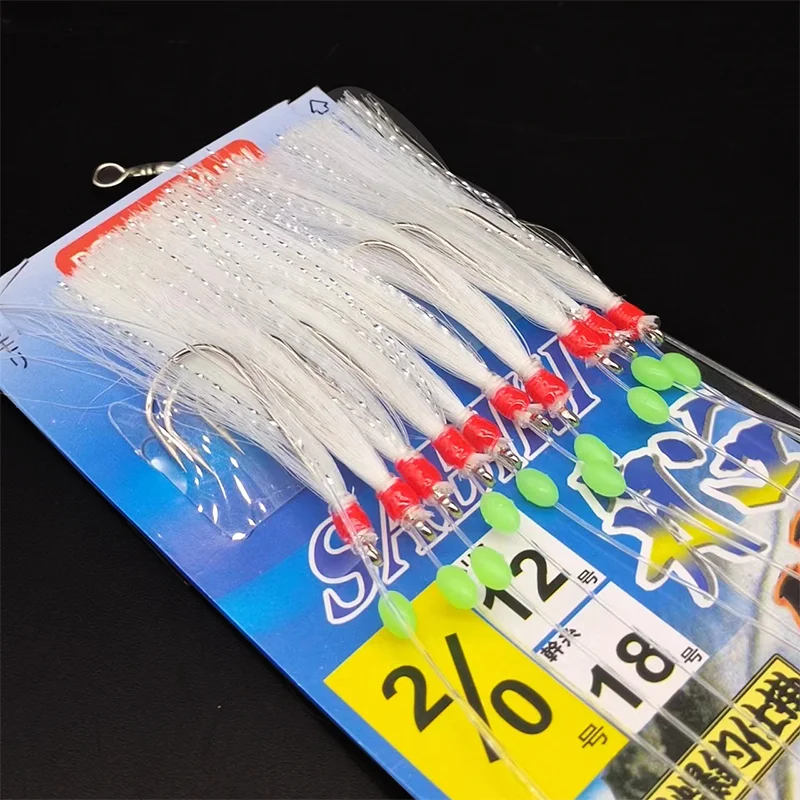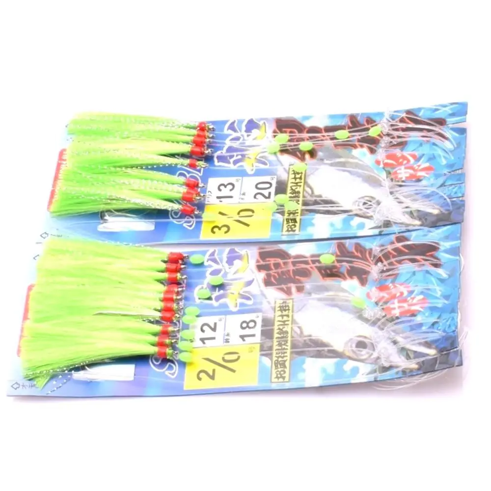 Anzuelo de cuerda simulado, pelo blanco, pelo verde, 10 anzuelos, anzuelo luminoso, anzuelo de piel de pescado, pesca en el mar, anzuelo de pesca en barco, caballa