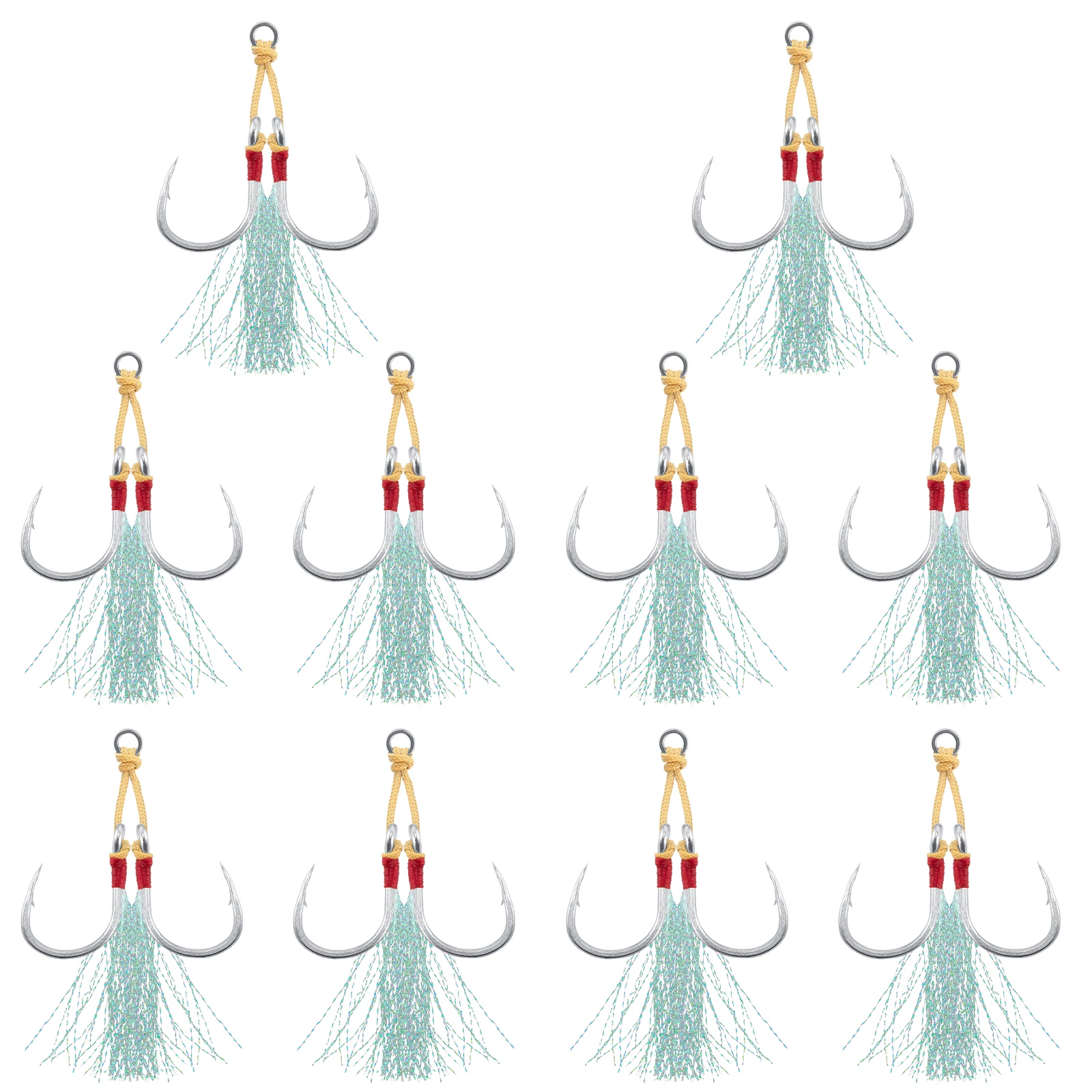 Anzuelo doble de asistencia para Jigging, anzuelo de pesca de agua salada, señuelo Vertical de tiro lento, plantilla de diamante de caída rápida, trazador de atún, 10 piezas