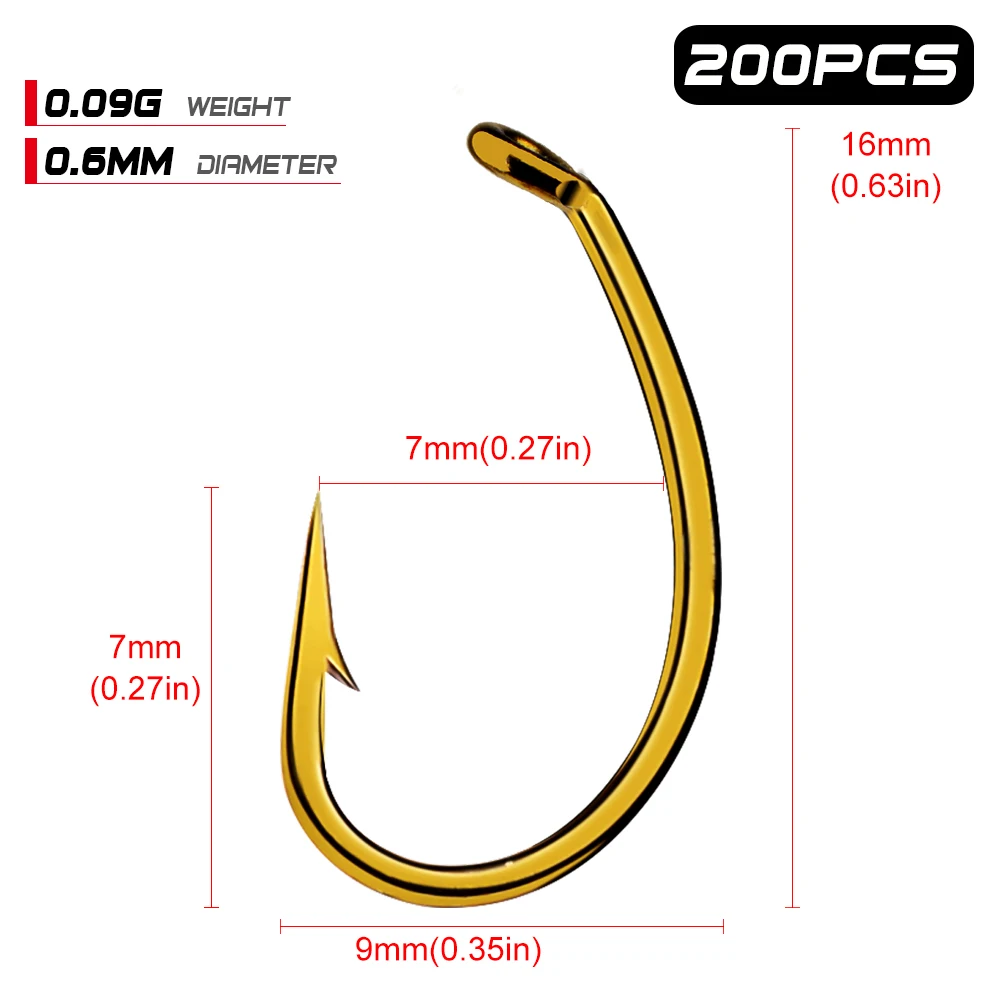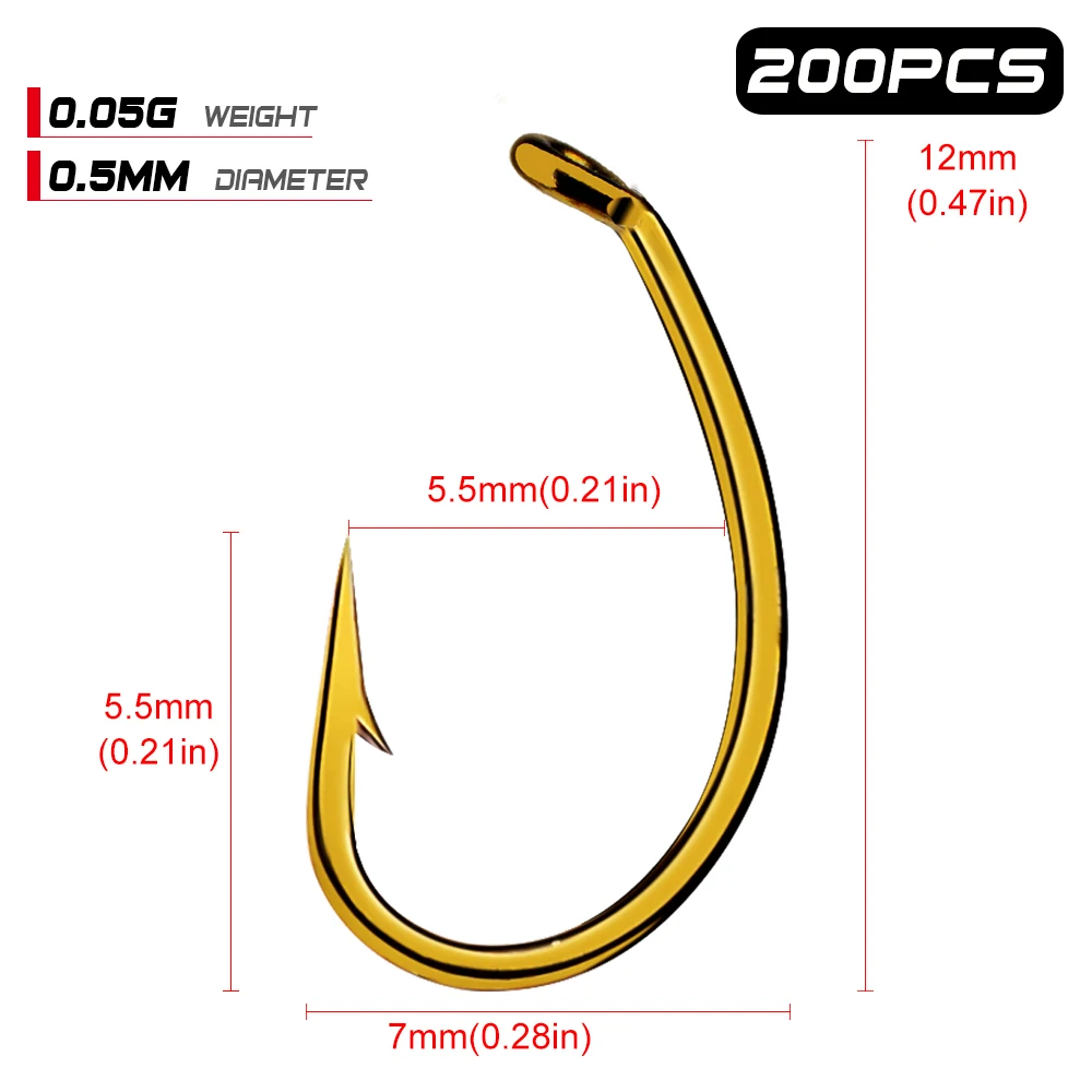 Anzuelo dorado afilado para pesca con mosca, ninfa, Scud, Caddis, camarón, carpa, n. ° 8, N. ° 12, 200 Uds.