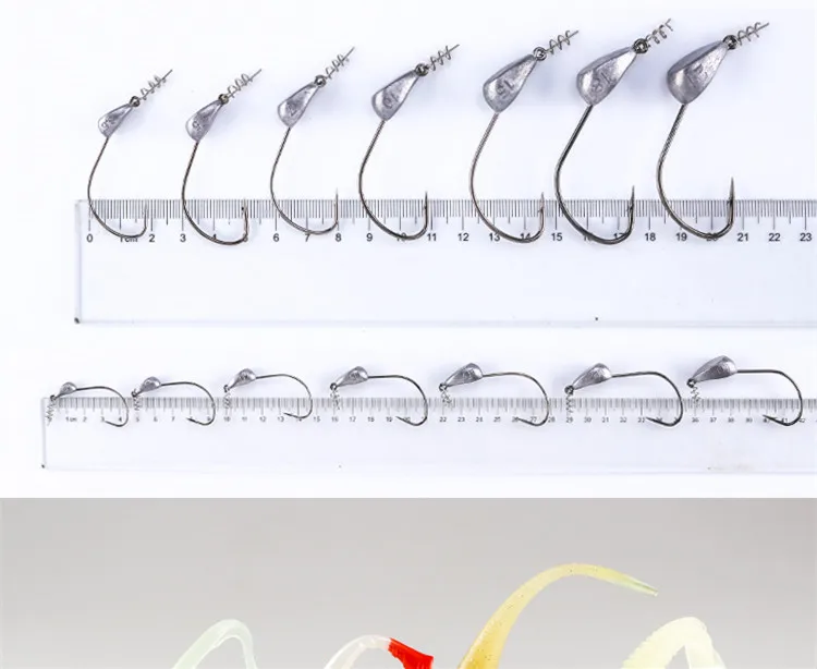 Anzuelo de gusano con cabeza de anzuelo, 3,5-21g, fondo colgante gratis, señuelo de pesca, raíz de lubina, Jigging, cebo suave, anzuelos afilados, 2-3 unids/bolsa