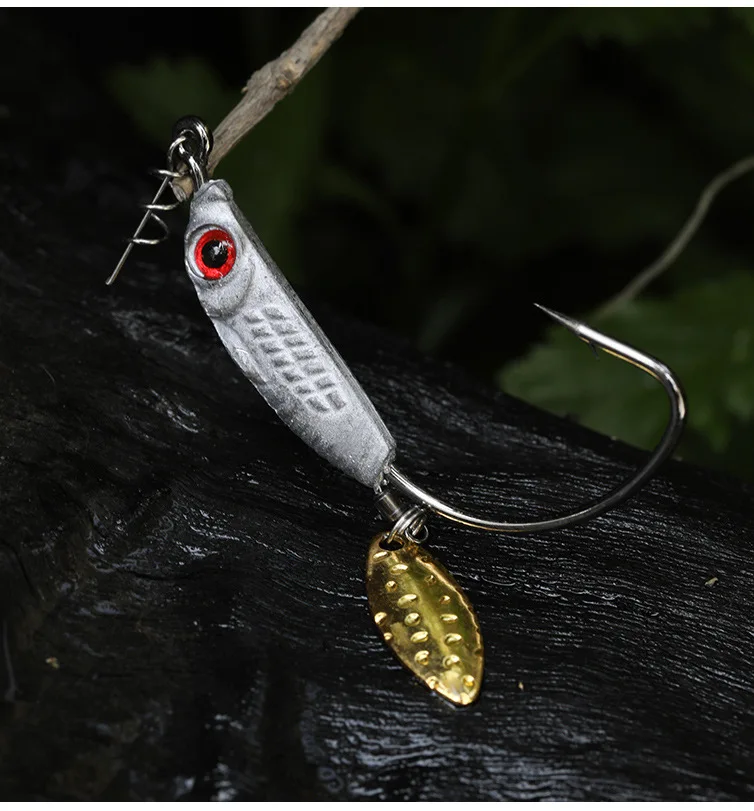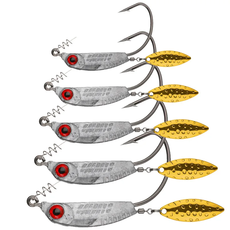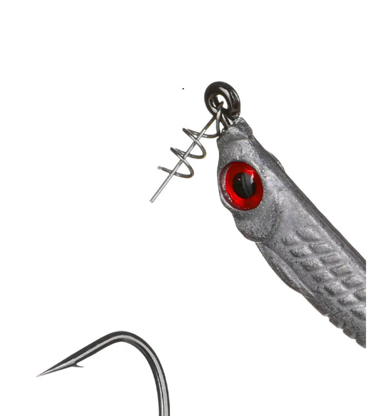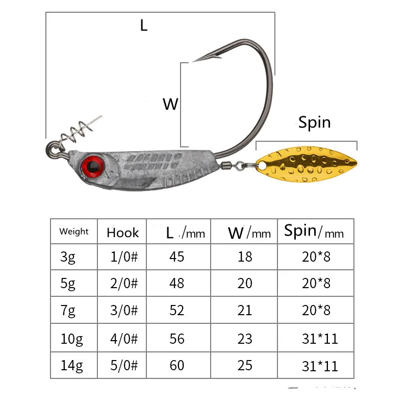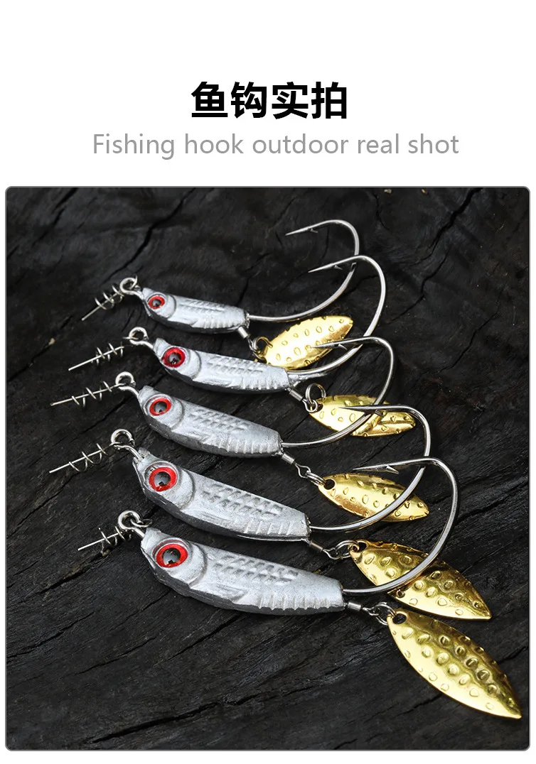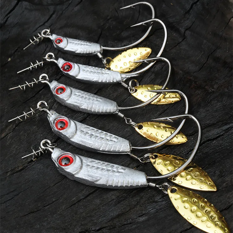 Anzuelo de gusano con forma de pez con plomo, 3g, 5g, 7g, 10g, 14g, anzuelos con cabeza de anzuelo, puntada de bloqueo, cebo giratorio, señuelos artificiales, lote de 5 piezas en oferta