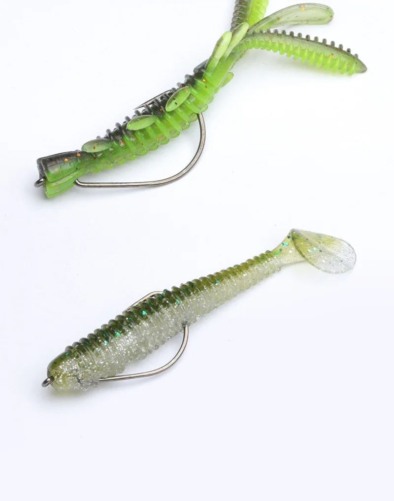 Anzuelo de gusano de pesca 2X, anzuelos de cebo de señuelo suave de vientre ancho fuerte, anzuelos de aleación de acero al carbono con revestimiento súper suave, lote de 20 piezas en oferta
