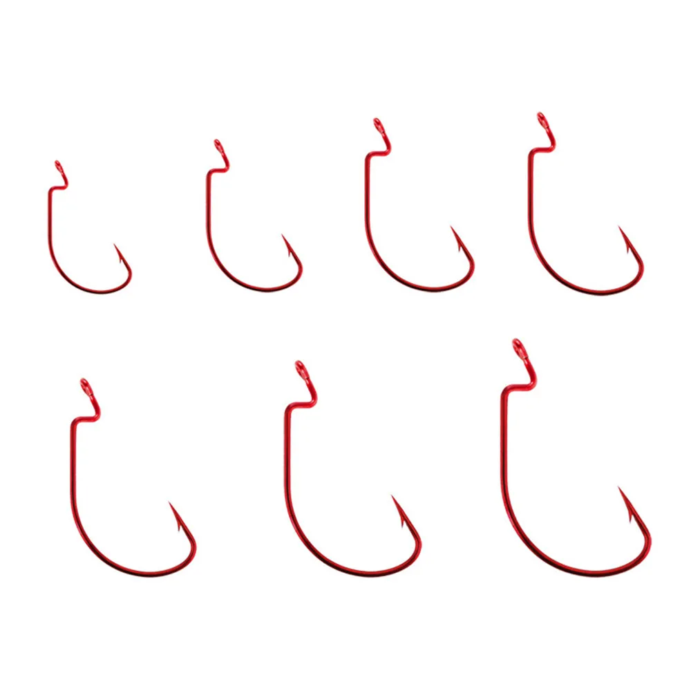 Anzuelos de pesca con manivela roja, señuelo, cebo suave, anzuelo, tamaño 1/0#-5/0# Lote de acero con alto contenido de carbono 5 piezas
