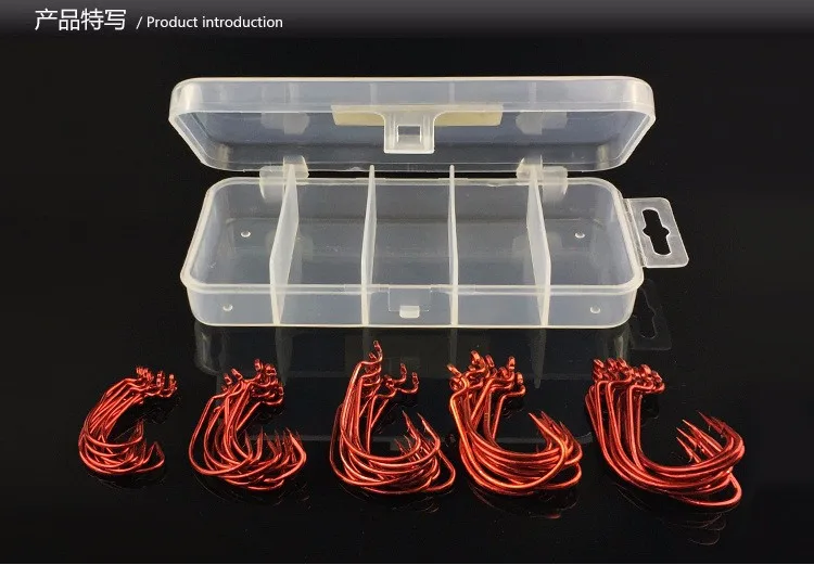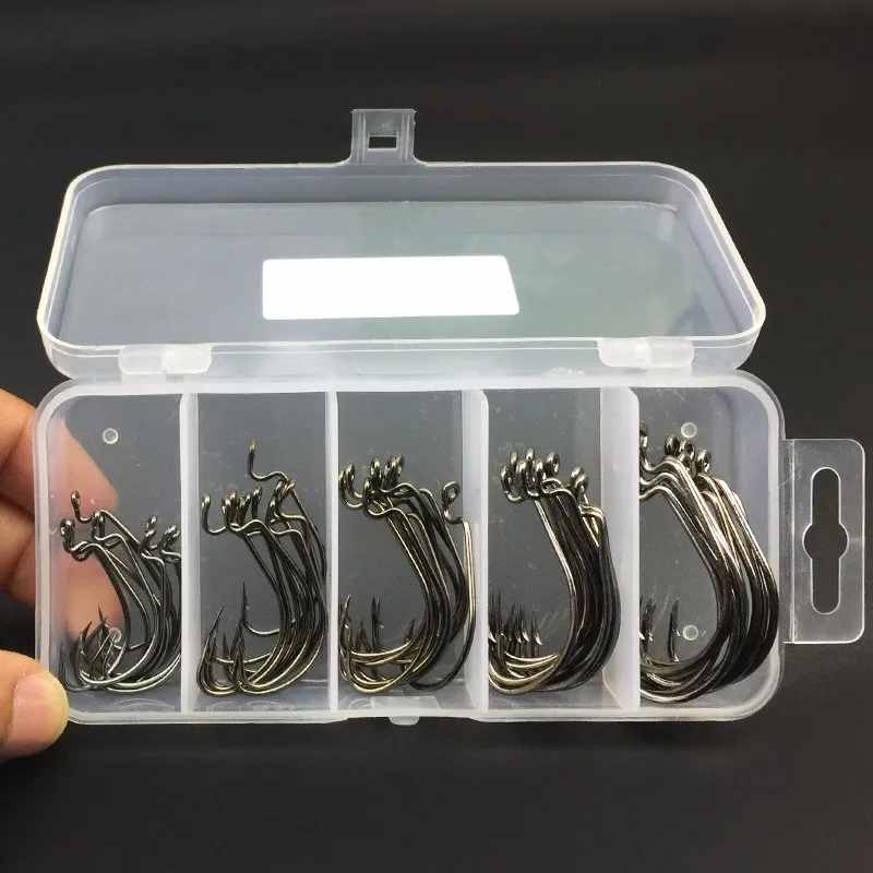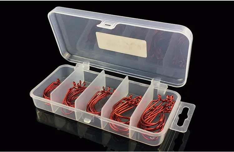 Juego de 51 piezas de anzuelo de gusano rojo y negro, anzuelo de pesca de acero con alto contenido de carbono para cebo blando Texas Rig 2# 1# 1/0# 2/0# 3/0#